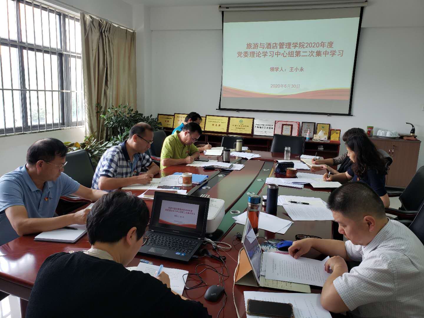 6月30日上午,旅游与酒店管理学院党委理论学习中心组举行2020年第二次集体学习,学院党委委员王小永同志领学习近平总书记关于新冠肺炎疫情防控工作的重要讲话精神。会议由党委书记张向英同志主持。
