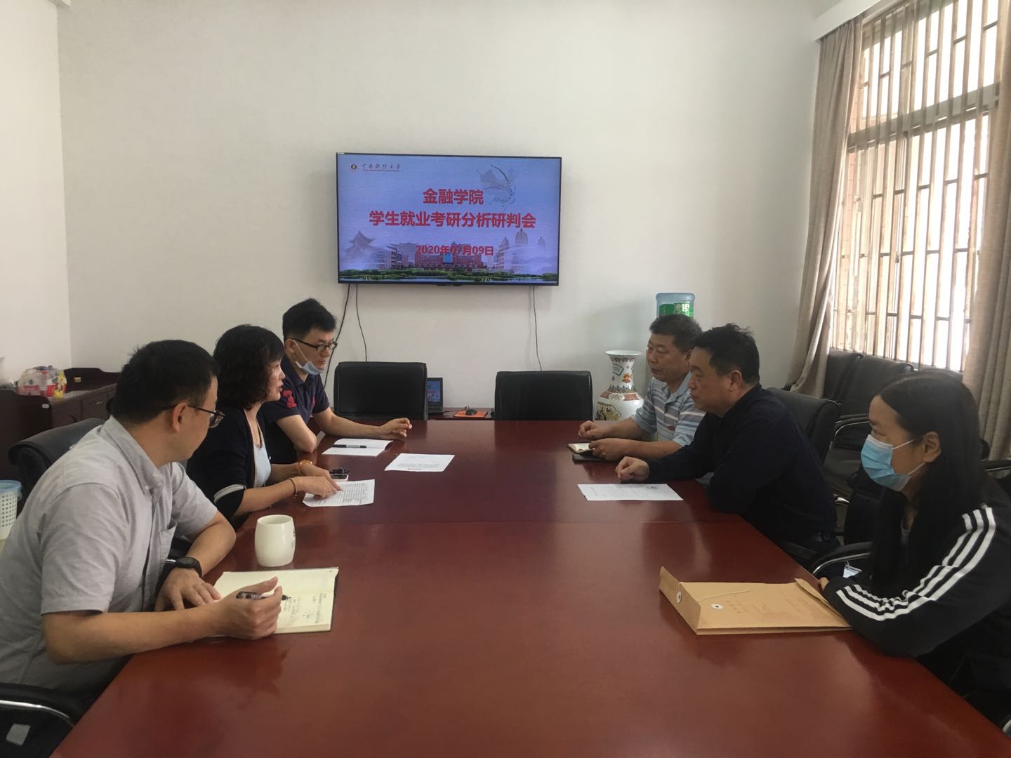 7月9日上午,金融学院举行2020届毕业生就业考研分析研判会,学院党政班子成员参加会议。