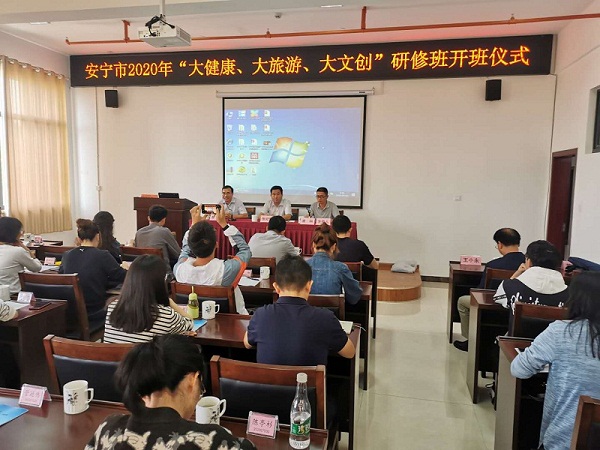 7月16日上午,旅游与酒店管理学院与安宁市文化和旅游局联合举办的“安宁市2020年大健康、大旅游、大文创”研修班在安宁市委党校正式开班。安宁市人民政府副市长张纪辉,beat365旅游与酒店管理学院院长晏雄、正处级组织员王小永、培训中心主任苏卫华参会。开班仪式由安宁市文化和旅游局局长唐科主持。