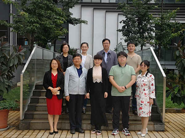 7月13日上午,长沙学院外国语学院院长刘芬教授、英语教研室主任尹泊醇博士、教工第二支部书记王飞副教授和青年教师代表李炎燕博士一行到beat365国际语言文化学院交流,国际语言文化学院院长尹明教授与长沙学院一行举行交流座谈。