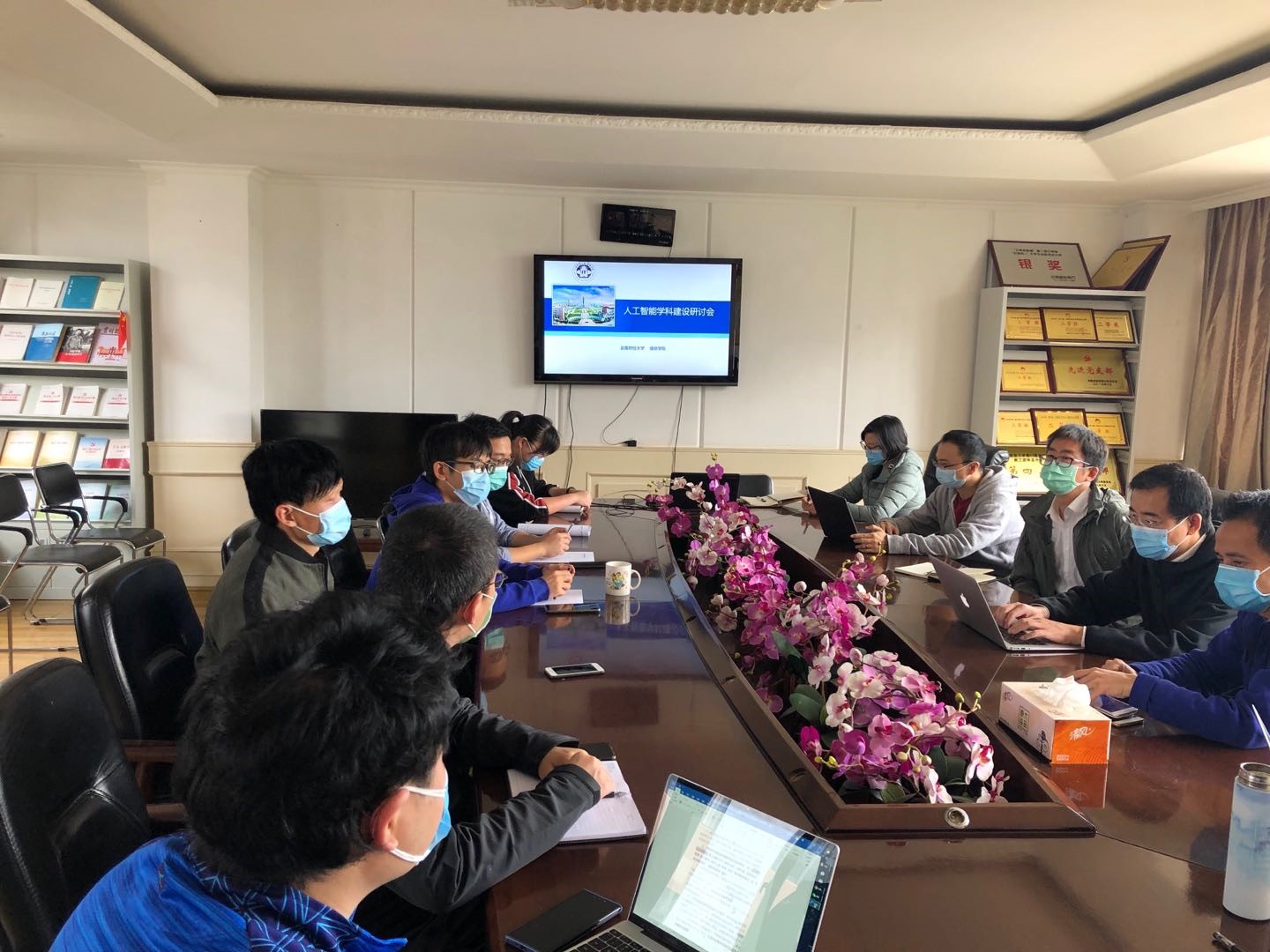 曾志勇介绍学校关于人工智能方向研究生的招生模式、学生管理、部门间协作方式等研究生培养方面的情况,就人工智能方向研究生培养的智能+特色模式、培养方案、课程设置、导师构成等问题进行了交流。余益民、赵成贵及相关老师分别发言,对有关问题提出建设性意见。