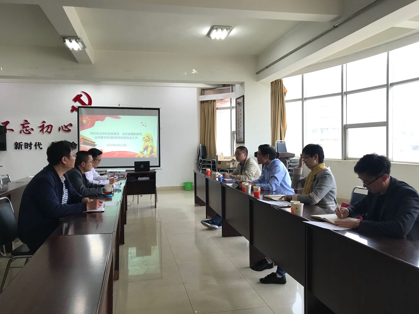 4月24日下午,校党委委员、校长助理赵昶一行四人到传媒学院调研指导创新创业工作,围绕如何发掘创业项目、营造创新创业氛围、提升竞赛实力、催化项目落地等问题进行了充分交流和研讨。