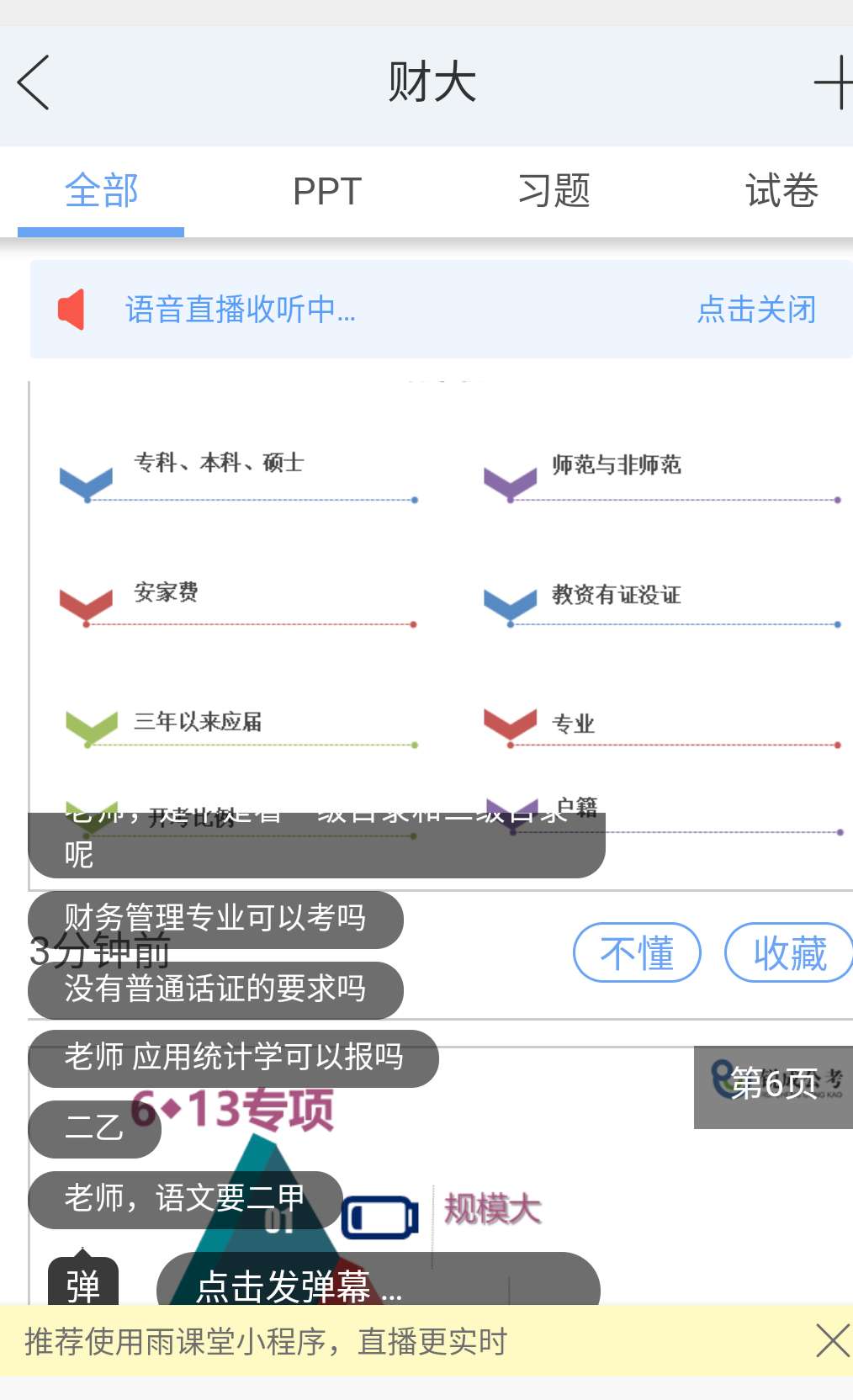 5月23日,统计与数学学院教师王彬为毕业生进行云南省基础教育学校专项招聘政策解读,1118名毕业生通过雨课堂收听了讲座。 王彬为同学们解读了云南省基础教育学校专项招聘的政策,并解答了同学们的疑惑。