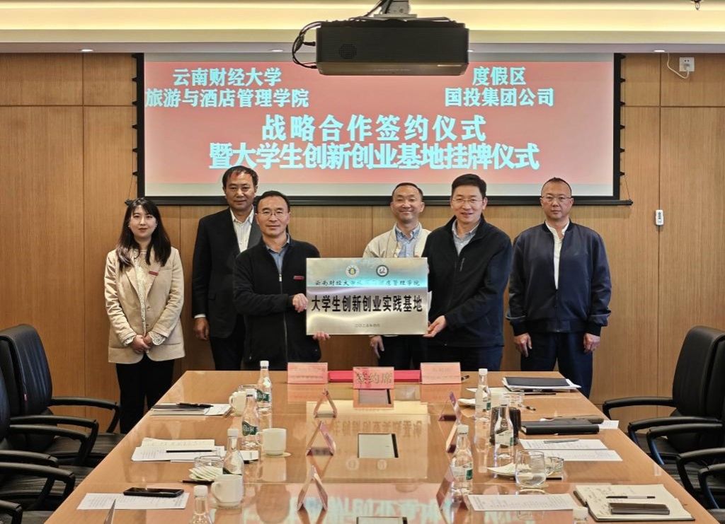 4月10日下午,旅游与酒店管理学院与昆明滇池度假区国投集团公司举行战略合作签约仪式暨大学生创新创业基地挂牌仪式。
