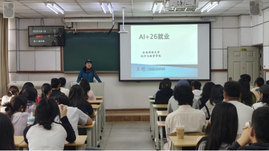 为应对人工智能技术对就业市场的深刻影响,提升学生职业规划能力,4月18日下午,财政与公共管理学院在卓远楼215报告厅举办"心动的offer"职业规划系列讲座。活动由统计与数学学院副教授王彬担任主讲,围绕"AI+就业"主题为2022级、2023级本科生系统讲授职业发展趋势与公职招考新动向。