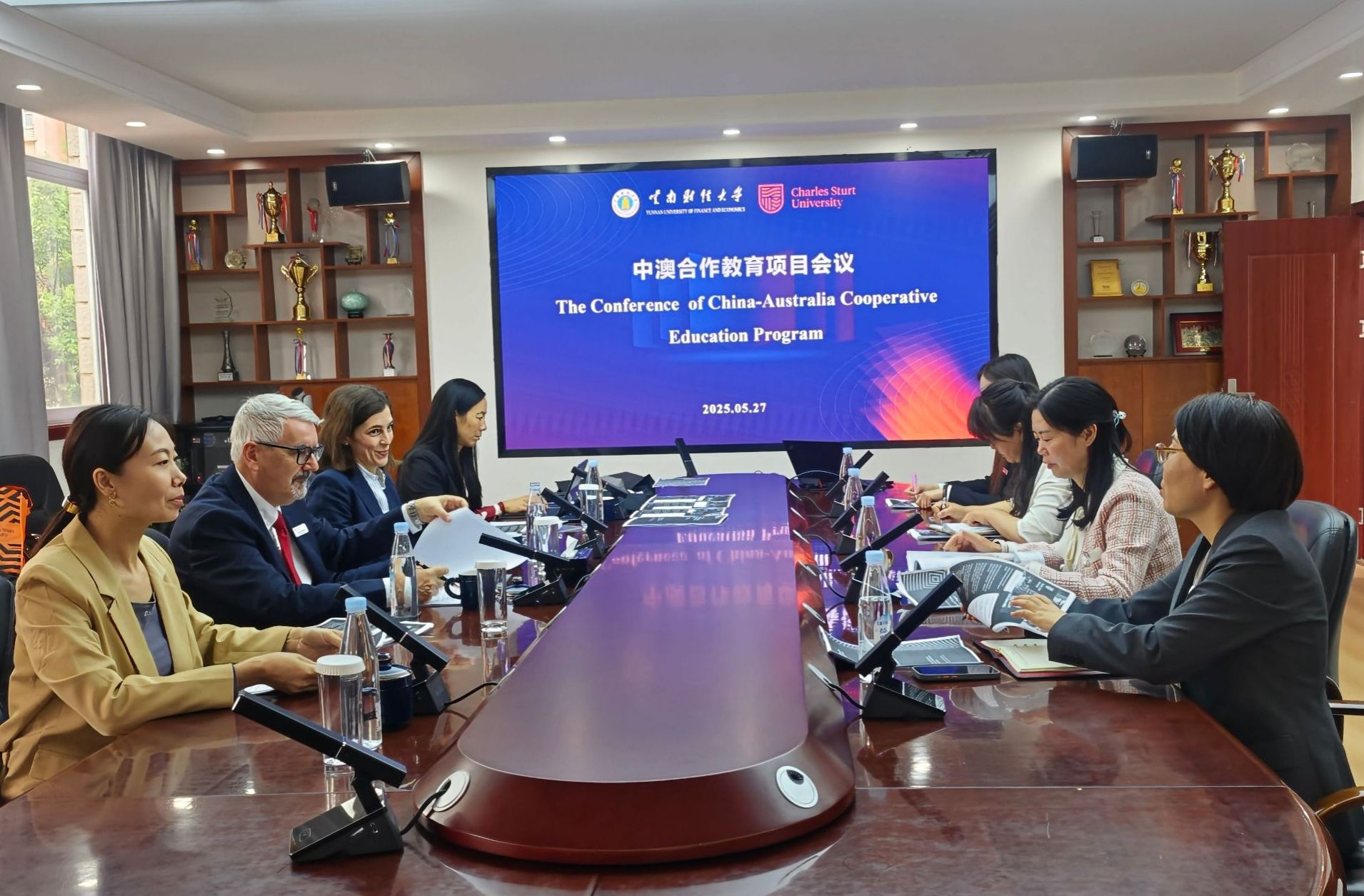 5月27日,澳大利亚查理·斯特大学商业、司法和行为科学学院院长路易斯·比佐,全球参与处处长埃莉诺·米切尔,项目合作发展办公室主任尚塔尔·唐和北亚区域经理李燕到访国际工商学院,与学院院长张洪烈、副院长张俊婕就中澳合作项目教学管理展开深入交流。
