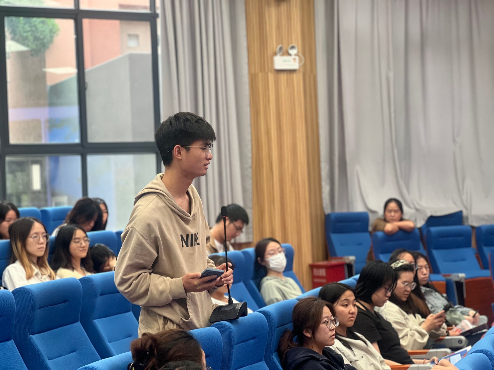 广东外语外贸大学研究生院副院长张秀三为同学们详细介绍了学校的整体发展及近年来研究生招录情况,其他老师分别介绍了各学院的具体情况、特色优势、对口的研究生招录专业及研究生未来发展前景等内容,为同学们提供了极具参考价值的报考信息。在互动答疑环节,同学们就个性化的考研困惑、报考应注意问题等与老师们展开深入交流。