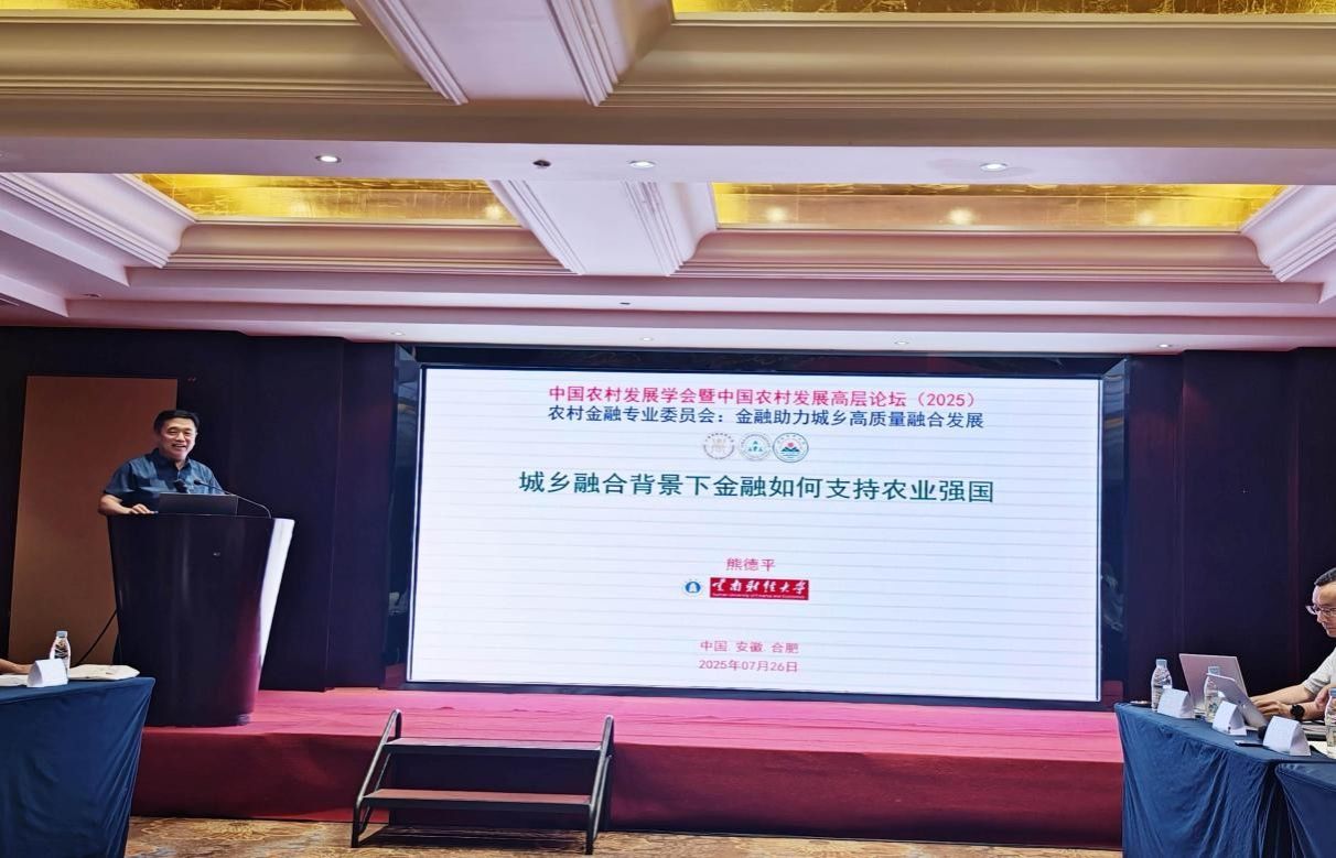 7月26-27日,由中国农村发展学会、中国社会科学院农村发展研究所、安徽农业大学共同主办,安徽农业大学经济管理学院、安徽农业大学乡村振兴学院、安徽农业大学社会科学处、安徽农业现代化研究院承办的“中国农村发展学会年会暨中国农村发展高层论坛(2025)”在合肥举行。本届论坛的主题是“高质量推进城乡融合发展”。金融学院名誉院长熊德平教授和学院教师黄倩教授应邀参会。