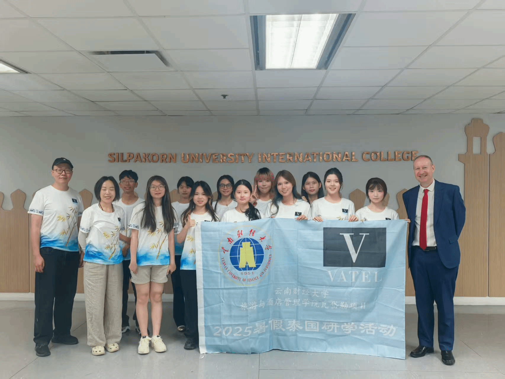 8月3日-8月10日,受瓦岱勒泰国校区(泰国艺术大学)邀请,旅游与酒店管理学院陈彦竹等11名学生在王毓川、陈中科两名教师的带领下参加了法国瓦岱勒泰国校区的国际文化交流活动,这是beat365师生第5次参加瓦岱勒暑期泰国研学活动。本次活动在法国瓦岱勒国际酒店与旅游管理商学院泰国校区的泰国艺术大学国际学院举办,共有来自中国、印度、日本等17个国家瓦岱勒项目的107名师生参加。