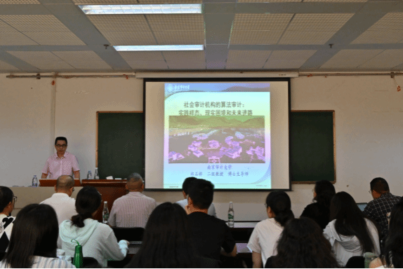 9月18日,由会计(审计)学院主办的第二期“中彩云审计名家大讲坛”在逸夫楼804举行。本次活动邀请到中国审计学会审计教育分会秘书长、中国政府审计研究中心学术委员、南京审计大学郑石桥教授以《社会审计机构的算法审计:实践样态、现实困境和未来进路》为主题开展讲座,会计(审计)学院副院长吴昊旻教授主持讲座,100余名师生代表参加。