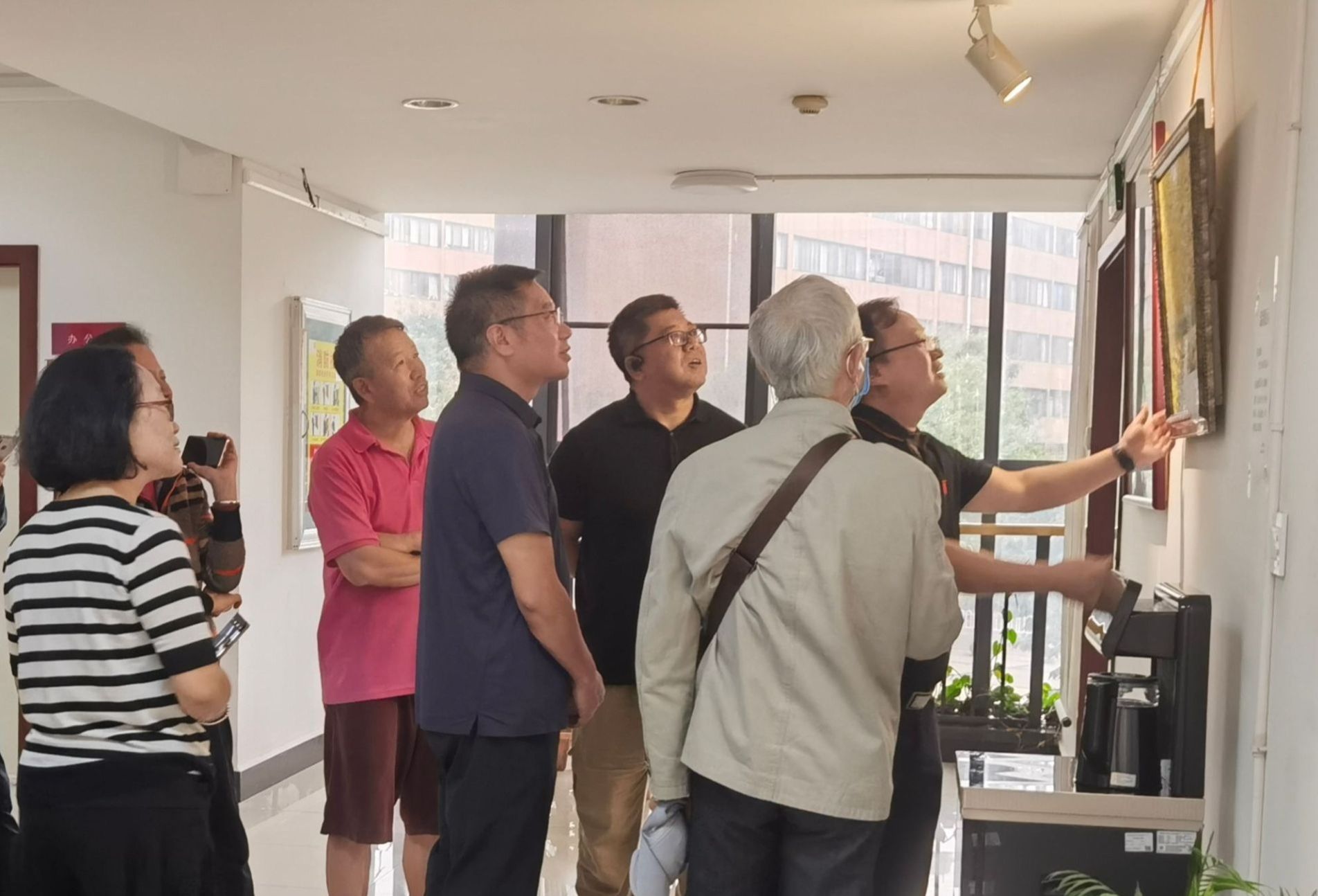 9月30日,学校纪委书记、监察专员业光远、党委委员、副校长颜明到场观看了展出的作品,对老教师们的作品表达了高度赞赏,认为展出的每一件作品都是离退休教职工们的智慧和艺术的结晶,充分体现了他们对生活的热爱和对艺术的追求,展现了丰富多彩的内心世界和家国情怀,热情讴歌了新中国成立75周年来所取得的巨大成就。