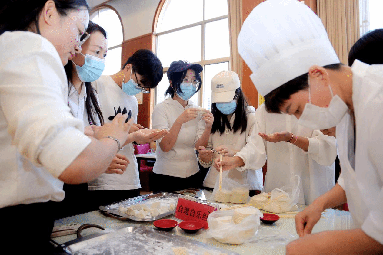 美食制作体验环节,由职工代表、学生代表组成的6个小组在厨师指导下现场学习并体验包饺子。从调馅、捏合到下锅,每一步都认真学习、精心制作,各组发挥想象、创新摆盘。在欢声笑语中,一盘盘创意十足、小巧别致的花式饺子新鲜出炉。大家依次参观、用心品尝,根据创意、味觉等评选出“最佳口味奖”“最佳创意奖”“最佳人气奖”及“最佳团队奖”并颁发了纪念品。