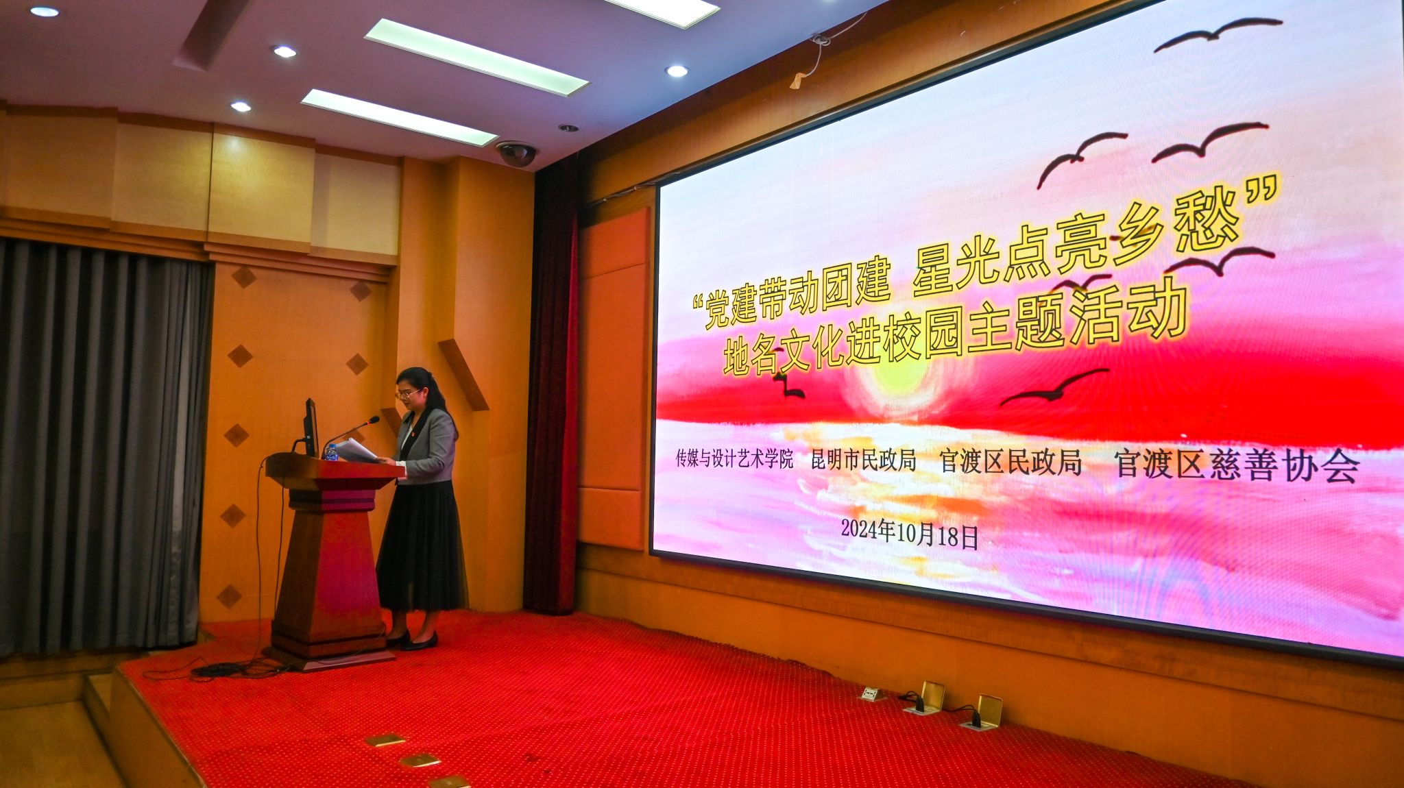 为进一步深化青年学生对家乡历史文化的了解和认同,加强对地名文化的保护,更加直观地感受昆明历史变迁和地名文化魅力,10月18日,传媒与设计艺术学院与昆明市民政局在学校鍾正山美术馆联合开展“党建带动团建 星光点亮乡愁”地名文化进校园主题活动。昆明市民政局党组成员、副局长马承斌,昆明市民政局地名规划处处长周小琳,昆明市民政局团委书记、昆明市社会救助处副处长毛海蓉,昆明市美协资深画家董常谙,中国书法家协会会员、云南省书法家协会会员尹雅丽,以及beat365传媒与设计艺术学院副院长崔木扬和部分师生党员60余人参加活动。活动由周小琳主持。