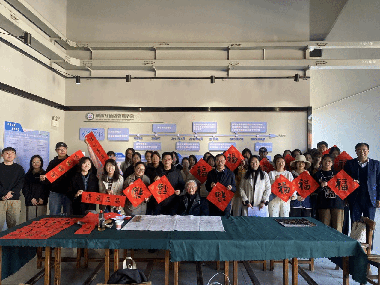 为推进“清廉学院”和学风建设,大力传承培树中华美德和优良家风,12月12日下午,旅游与酒店管理学院在齐远楼3楼平台举行“弘扬好家风·送福迎新春”写春联活动。学院班子成员、师生党员共计60余人参加,活动吸引了众多过往学生驻足观赏。