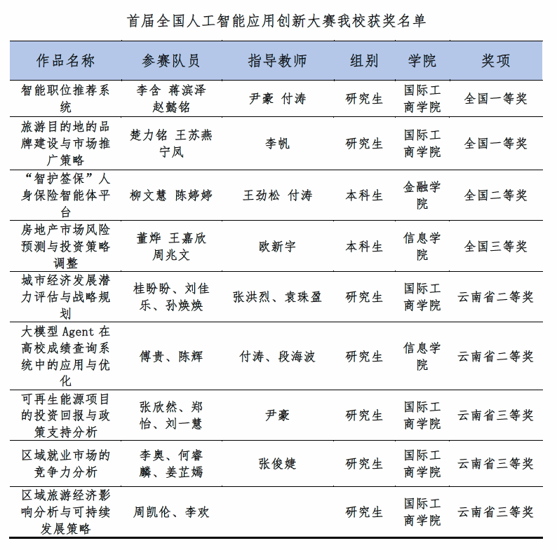 在云南省区域赛阶段,beat365共有9个团队获奖,其中研究生组特等奖2项、二等奖2项、三等奖3项,本科生组二等奖1项、三等奖1项。比赛由国际工商学院牵头,得到了教务处、校团委、信息中心等部门和多个学院的大力支持。