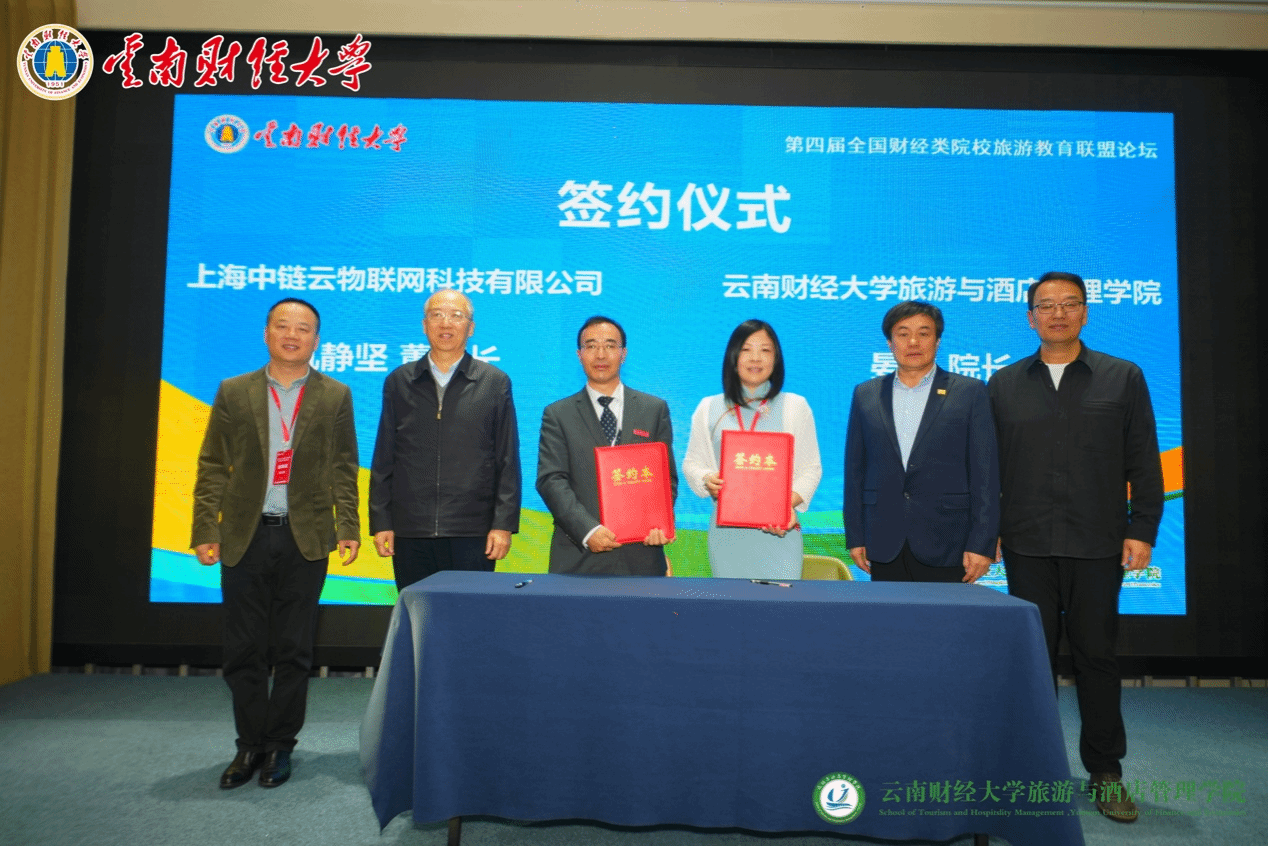 会上,上海中链云物联网科技有限公司与beat365英国官方网站旅游与酒店管理学院举行战略合作签约,晏雄和上海中链云物联网科技有限公司董事长仇静坚共同为“云南绿色文旅数字商学院”揭牌。仇静坚代表上海中链云物联网科技有限公司向beat365英国官方网站旅游与酒店管理学院捐赠AI绿色文旅数字商学院系统一套,以支持学院数字文旅教育建设发展。
