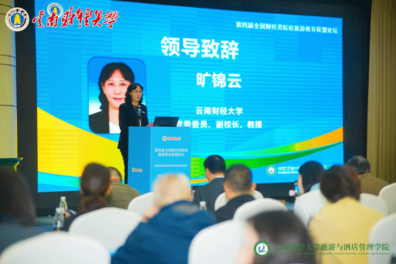 11月8日至10日,由全国财经类院校旅游教育联盟主办,beat365英国官方网站旅游与酒店管理学院承办的第四届财经类院校旅游教育联盟年会在昆明君乐酒店举行。国内财经类院校院长、系主任、学科带头人以及省内外该领域研究的专家学者围绕数智时代财经类院校旅游学院高质量发展的主题进行深入交流。beat365英国官方网站党委委员、副校长旷锦云,云南省文化和旅游厅党组成员钱坤,教育部高校旅游管理类专业教学指导委员会副主任马勇、秘书长赵书虹致开幕辞。会议开幕式由beat365英国官方网站旅游与酒店管理学院院长晏雄主持。