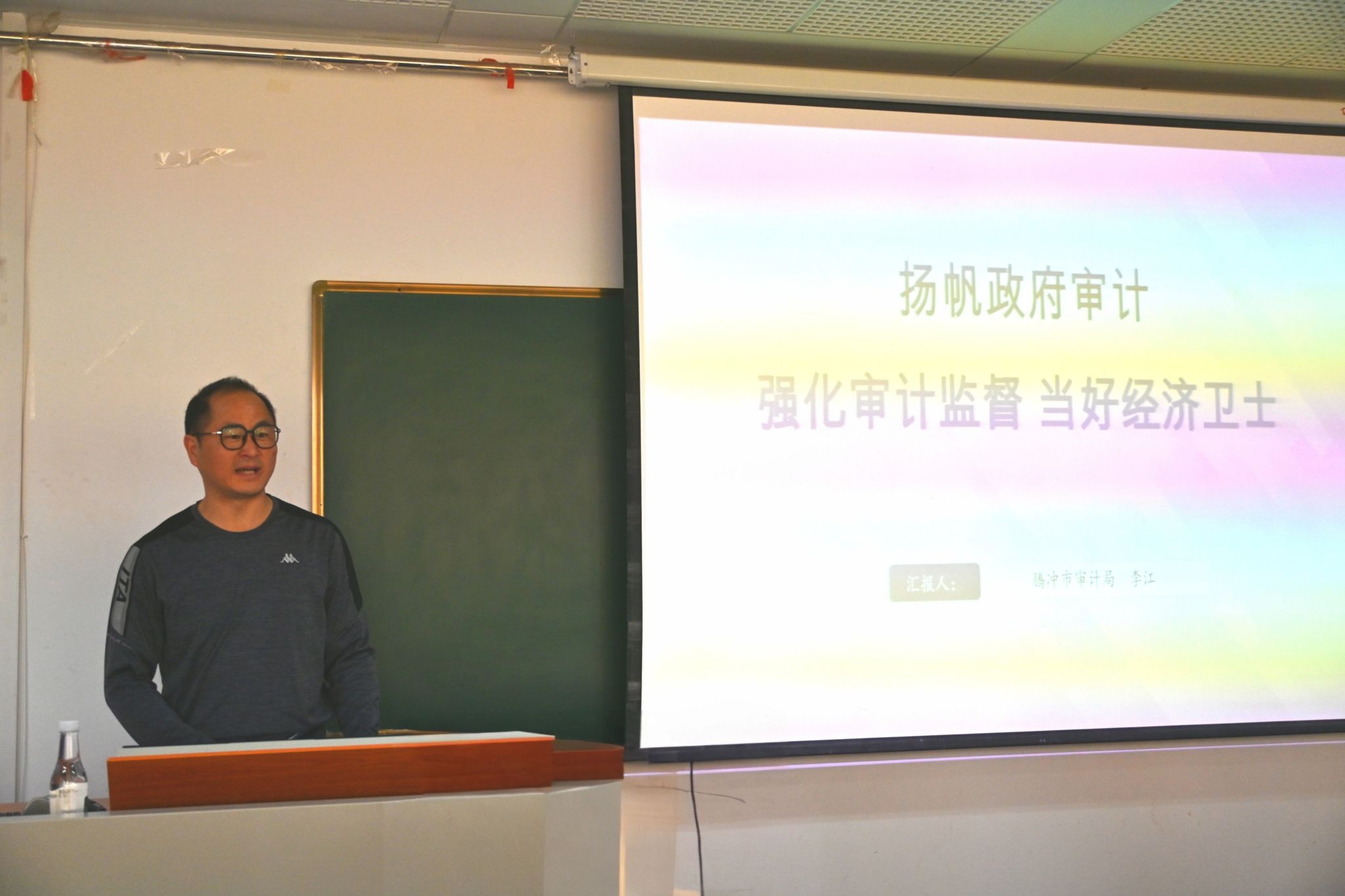11月14日,云南省审计厅与beat365英国官方网站的厅校合作项目“政府审计进校园”系列讲座第14期在逸夫楼804举行,原腾冲市审计局副局长、经责办主任、高级审计师李江应邀主讲,讲座由beat365英国官方网站会计(审计)学院博士生导师朱锦余教授主持,学院100余名师生参加。