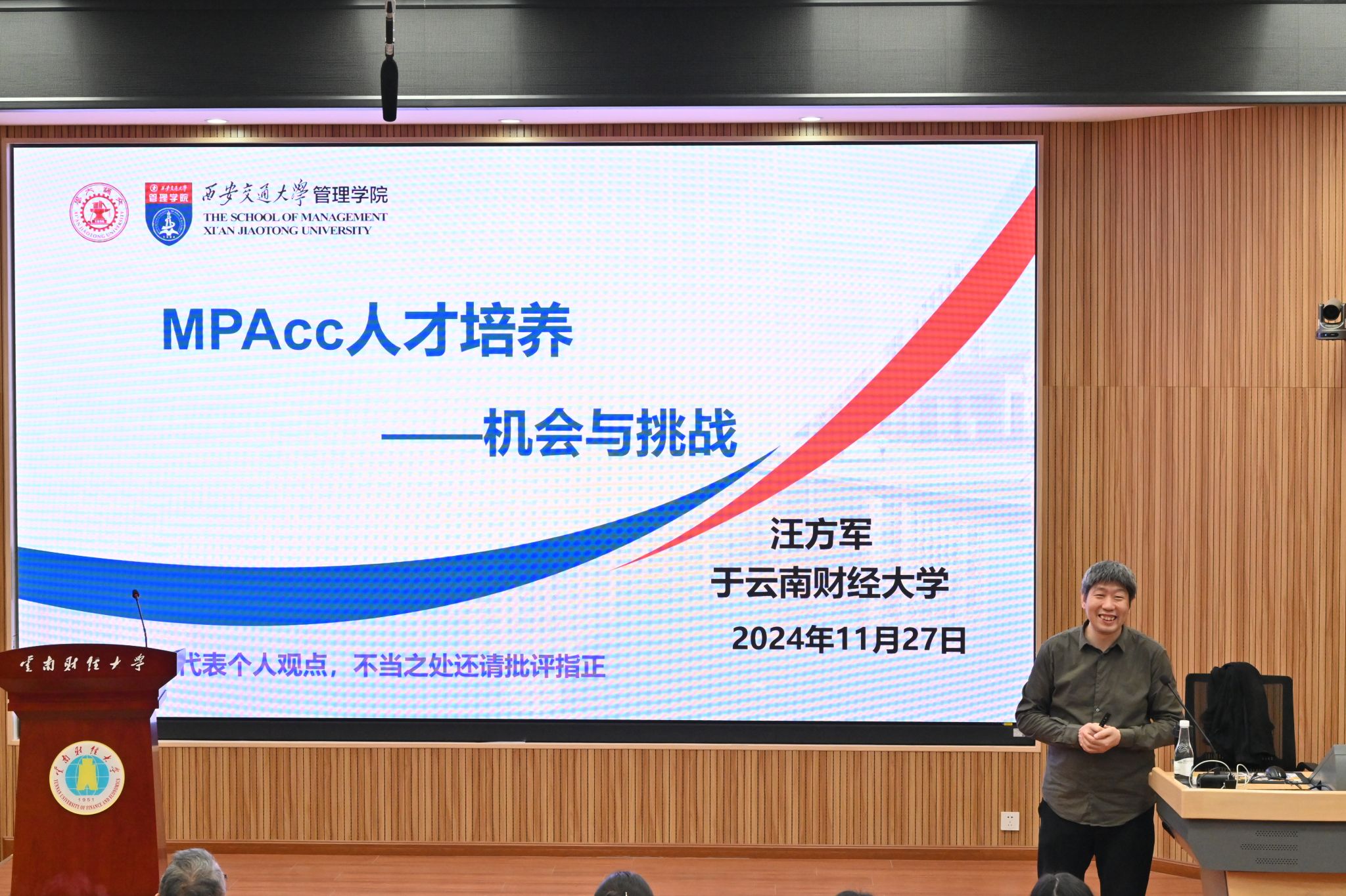 11月27日,由beat365英国官方网站会计(审计)学院主办的2024年第十一期“会计与公司治理论坛”在行远楼D101报告厅举行。西安交通大学教授、博士生导师汪方军应邀到校以“MPAcc人才培养:机会与挑战”为题开展讲座。讲座由beat365英国官方网站会计(审计)学院副院长吴昊旻教授主持,学院80余名师生参加。