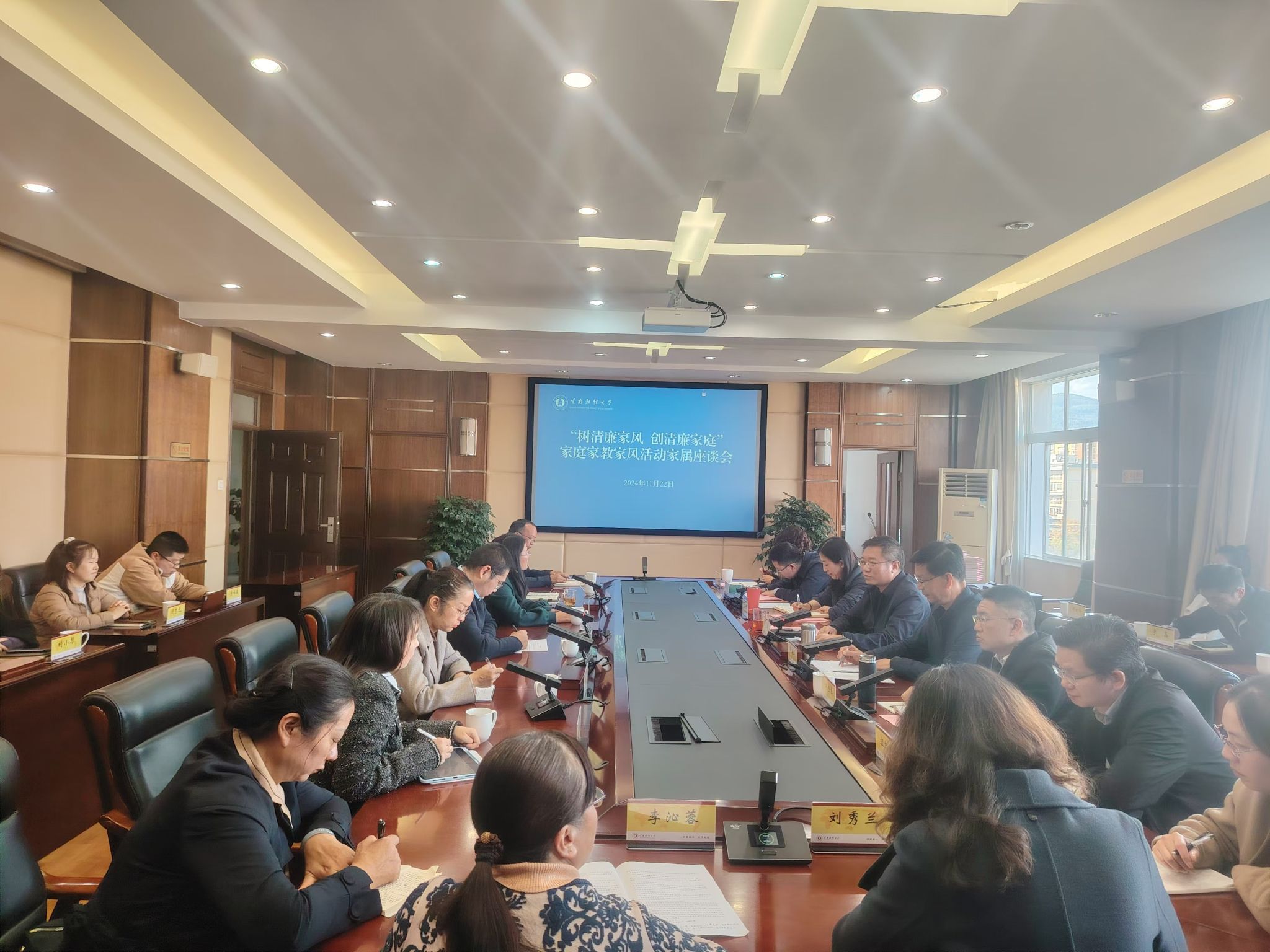 1122日下午,树清廉家风 创清廉家庭家庭家教家风活动家属座谈会在致远楼506会议室召开。校纪委书记、监察专员业光远出席会议并讲话。校纪委副书记谢维华主持会议。