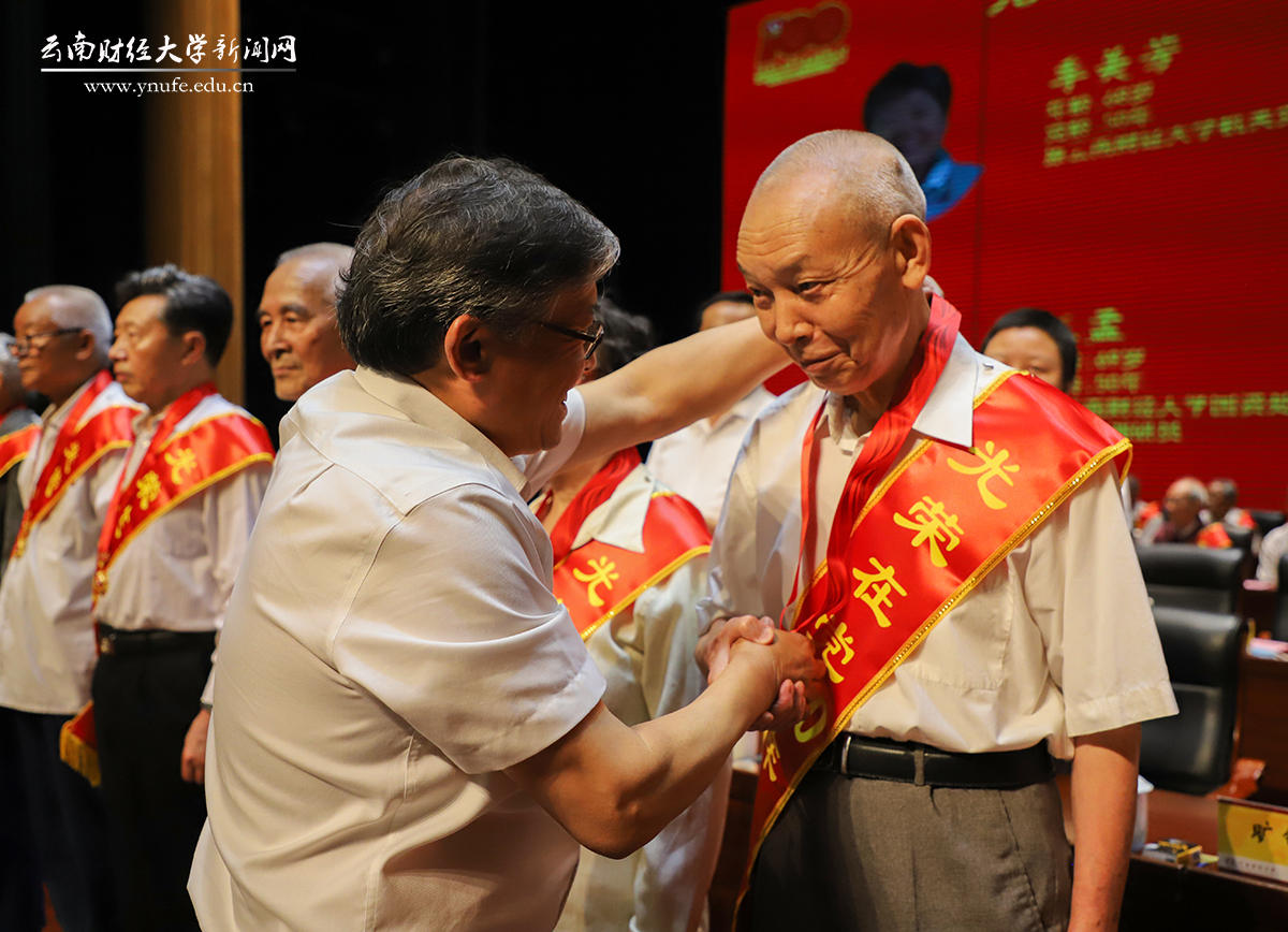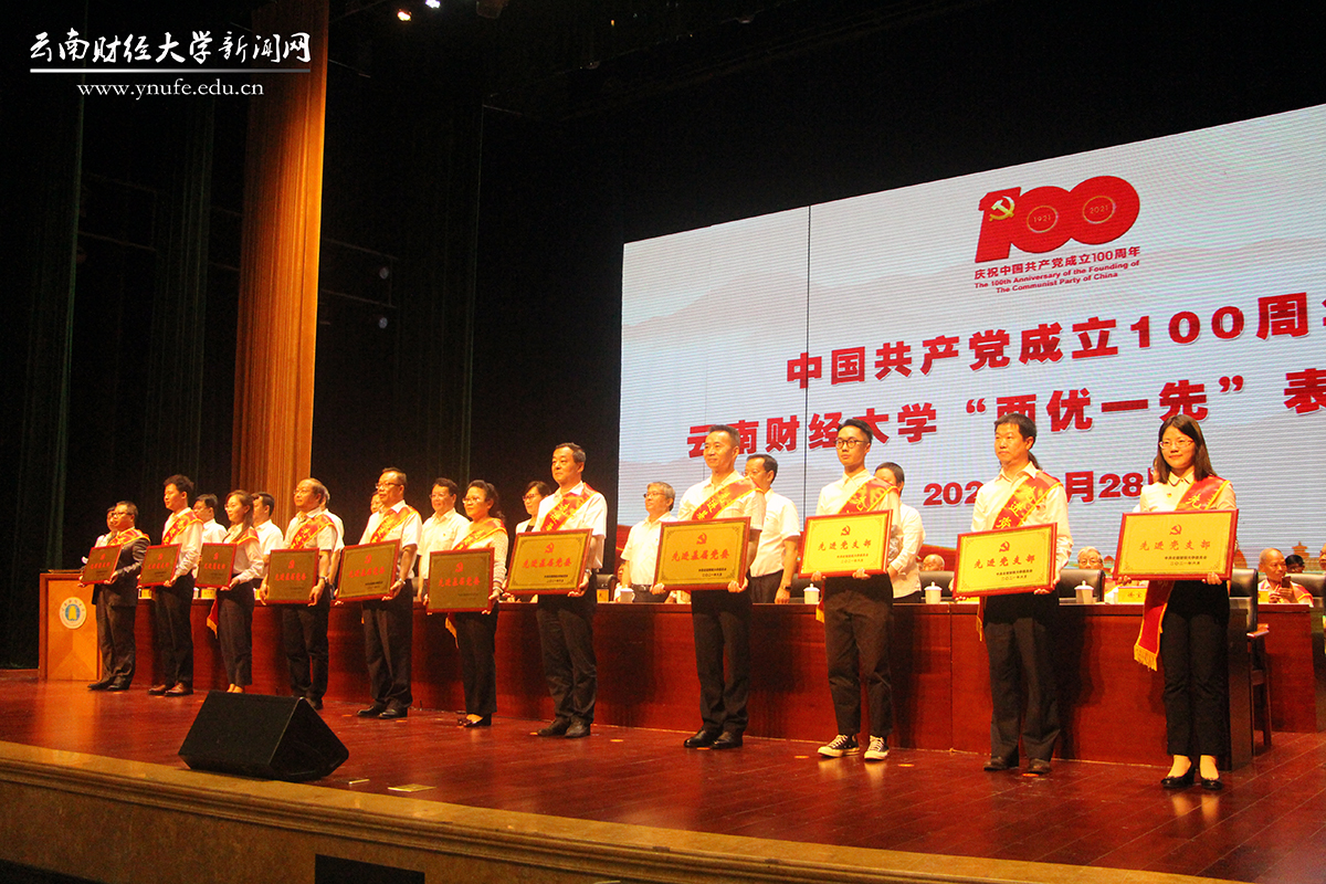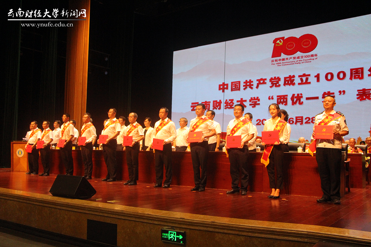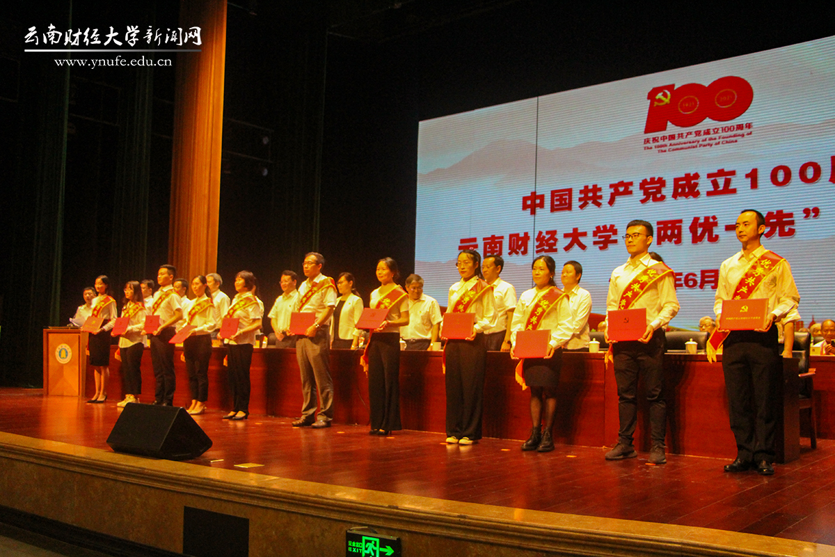 校党委委员为获评云南省、云南省教育系统和学校“两优一先”的个人及党组织,以及在学校脱贫攻坚、疫情防控、学分制改革、新校区建设管理等重点工作中表现突出的优秀党员代表颁奖。