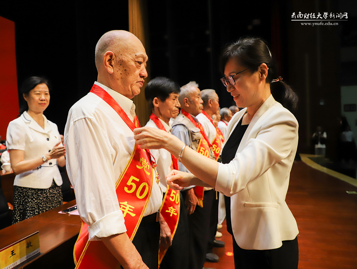 校党委书记王建颖在表彰大会上讲话,表彰大会由校党委副书记、校长伏润民主持。校党委副书记谢昌浩宣读表彰决定。学校党委委员,“光荣在党50年”纪念章获得者代表出席表彰大会并在主席台就坐。云南省、云南省教育系统及学校“两优一先”获奖个人及党组织负责人,校纪委委员,各二级党组织书记、副书记,各党支部书记,2021年上半年入党的新党员代表,师生党员代表,学校各民主党派和无党派代表参加大会。