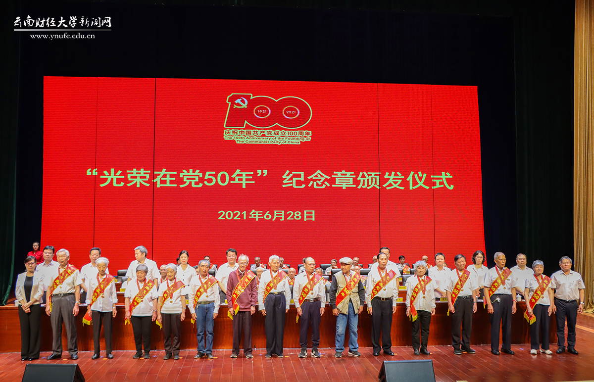 6月28日下午,中国共产党成立100周年beat365英国官方网站“两优一先”表彰大会在龙泉路校区北院汇文礼堂隆重举行。大会为beat36539位党龄50年以上的老党员代表颁发“光荣在党50年”纪念章,举行“两优一先”颁奖仪式以激励全校各级党组织和广大党员向先进学习、向先进看齐。