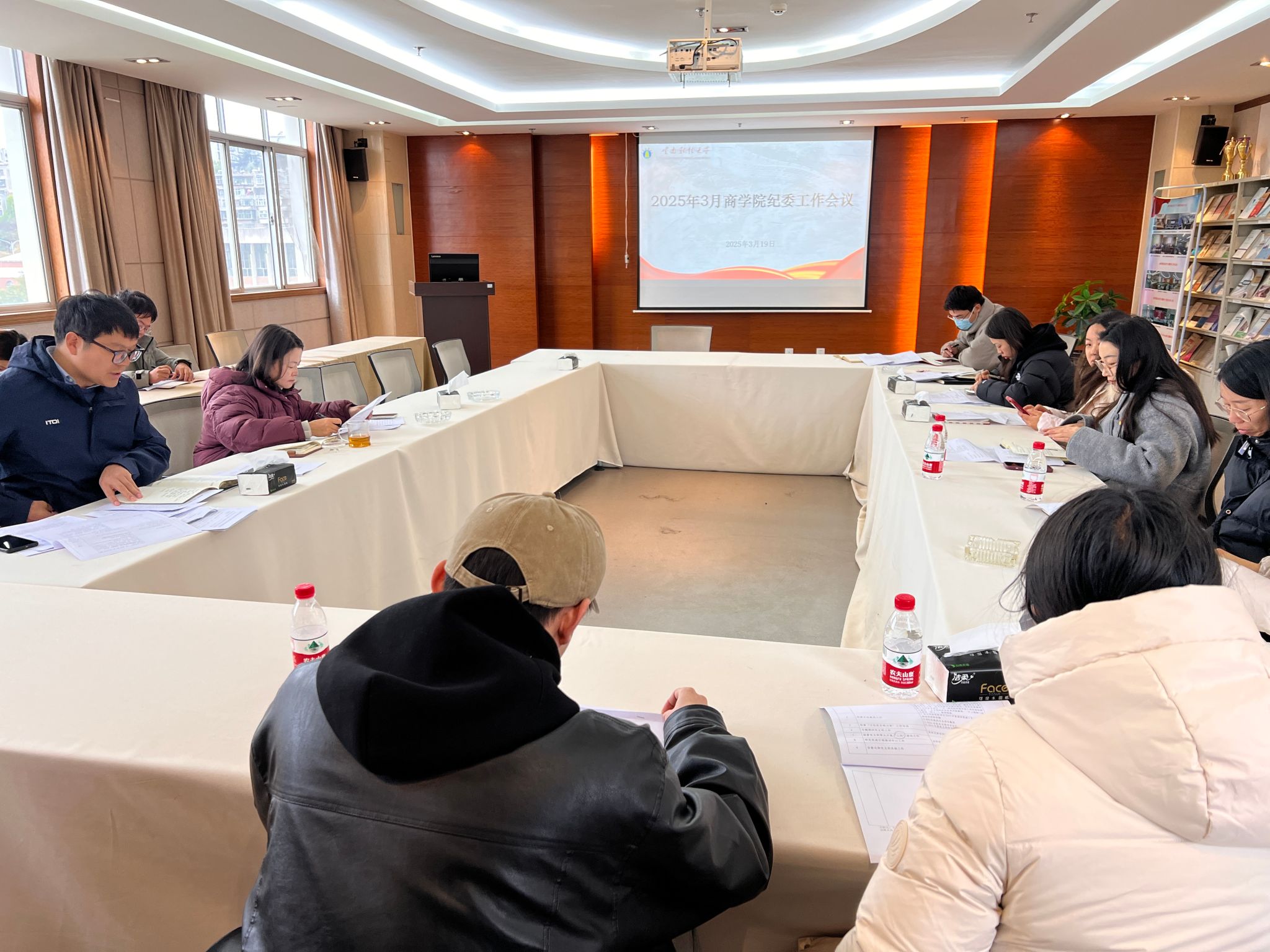 2025年3月19日,商学院于南院逸夫楼521会议室召开3月纪委工作会议。会议由商学院党委副书记兼纪委书记朱次毅主持,商学院党委书记王敏,学院纪委委员、各党支部书记及支部纪检委员参加。