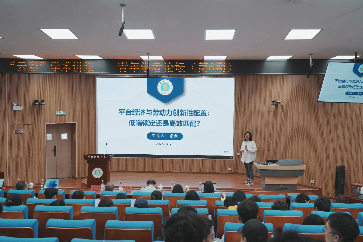 4月29日,学校举办第六期“云彩”学术讲坛之青年学者论坛,本期论坛聚焦“平台经济与劳动力创新性配置:低端锁定还是高效匹配?”及“对外直接投资如何影响企业跨区域合作创新?”,由经济学院梁牧博士和陈凯博士分别进行汇报,英国邓迪大学王争教授、云南民族大学潘海岚教授、西南大学江娟丽副教授分别进行深入点评。论坛由经济学院院长刘富华教授主持,全校100余名师生参加论坛。