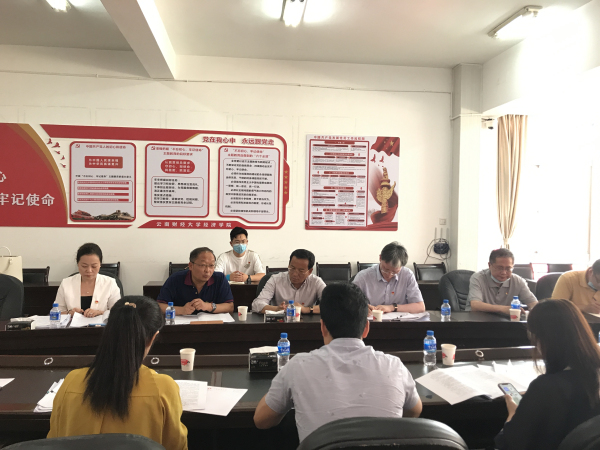 6月23日下午,省委教育工委一流党建示范党组织申报创建实地调研工作组第三组组长、昆明医科大学副校长、党委组织部部长王贵义同志,昆明理工大学国际学院副处级组织员邱清遐同志,云南特殊教育职业学院党委组织部部长陈科春同志一行3人到经济学院进行实地调研考察。学校党委副书记桂正华同志,党委委员、组织部部长张金甫同志陪同调研。学院党委班子成员、党支部书记、组织员、党员代表参加调研座谈会。