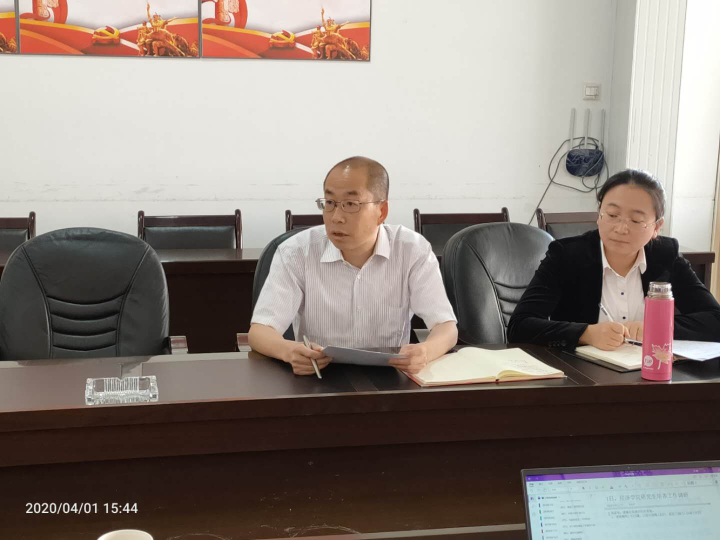 2020年4月1日,王敏副校长率研究生部负责人一行到经济学院对研究生管理及学科建设相关工作进行调研,调研座谈会由研究生部兰天主任主持,经济学院刘富华执行院长、党委陈永飞书记、赵强副书记、唐柳洁副院长、办公室李俊主任、国贸系江淑斌主任及研究生管理科全体老师参会。