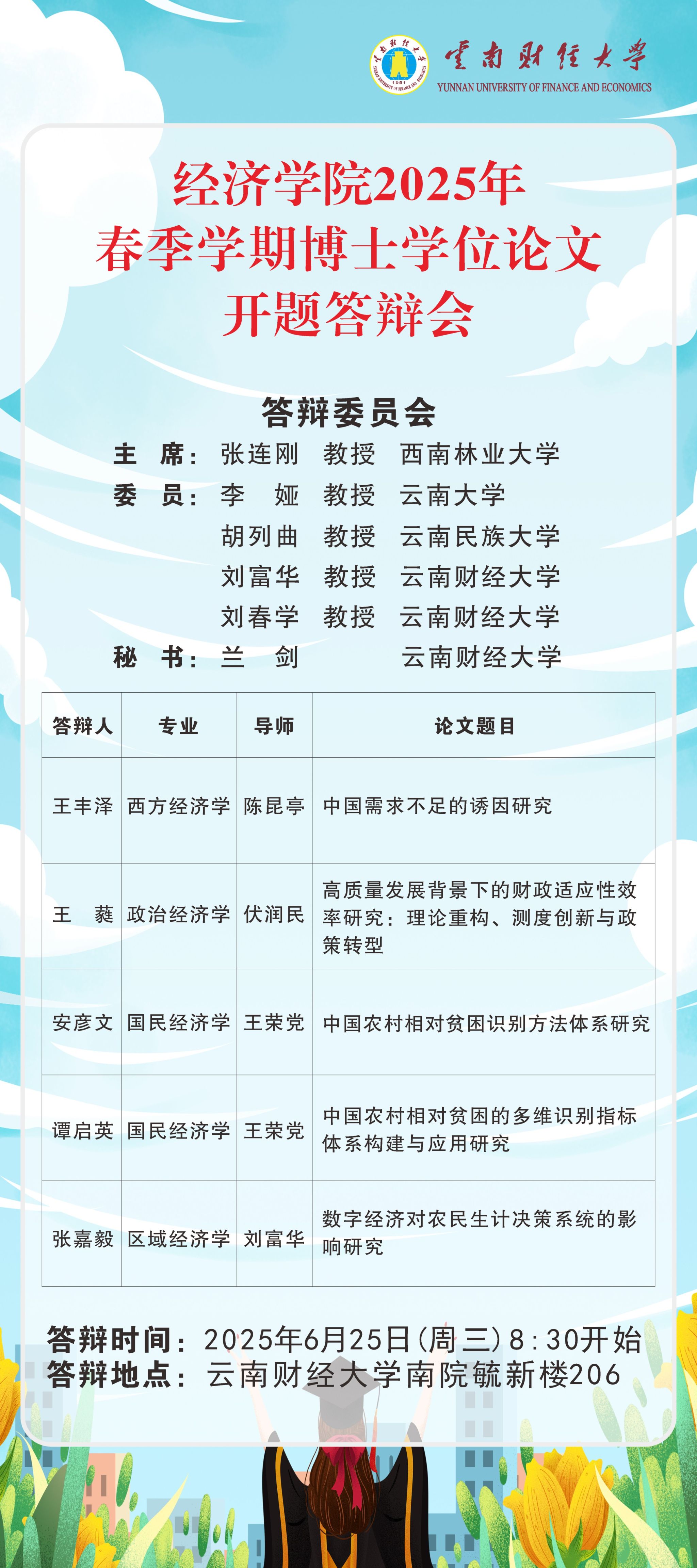 经济学院2025年春季学期博士学位论文开题答辩会预告