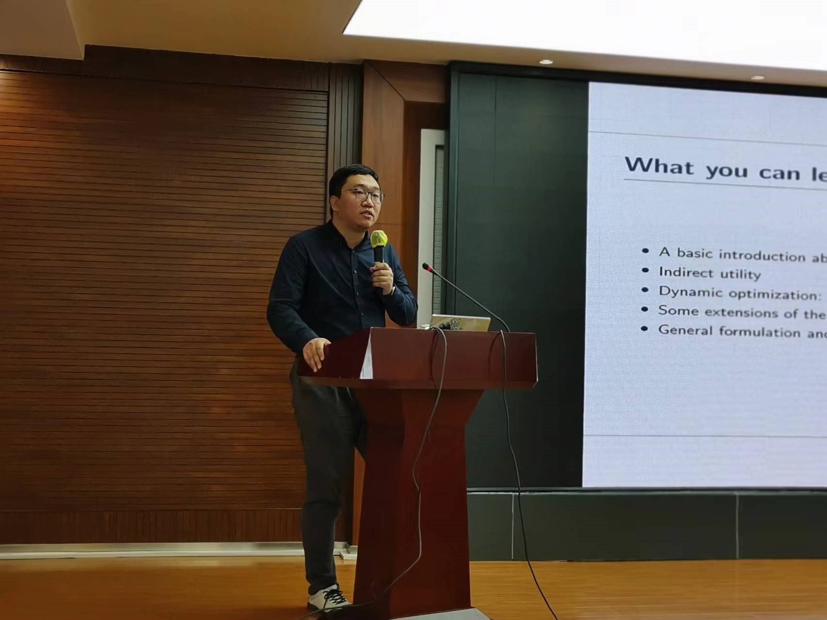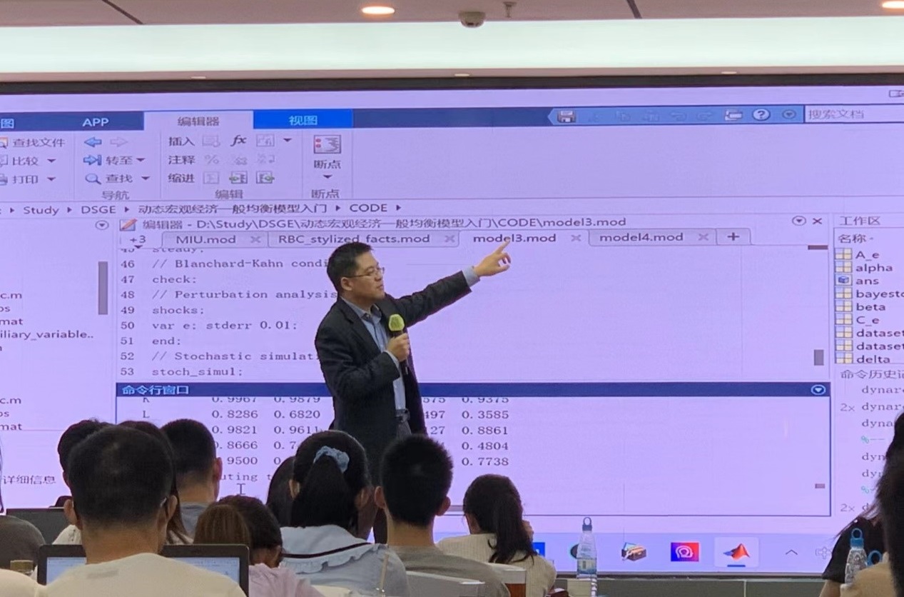 随后,中国人民大学财政金融学院李戎副教授进行了主题为动态优化基础的课程讲授。7月4日下午,武汉大学经济与管理学院刘岩副教授向学员们介绍了DSGE模型入门和对数线性话的方法。