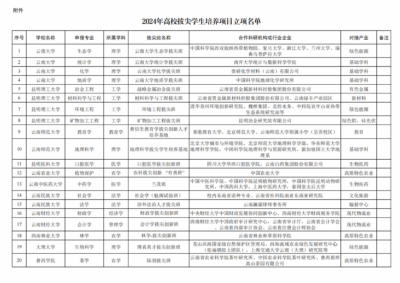 学校严格遵循习近平总书记关于“加强拔尖人才培养”的重要指示,按照云南省教育高质量发展三年行动计划的工作部署,结合学校办学特色和学科优势,继续深化本科教学综合改革,不断创新培养模式与育人机制,致力于为国家及云南省培养急需紧缺的、具有突出创新能力的高素质财经类拔尖人才。省级拔尖班的培养过程中,学校将聚焦科学鉴才,推进招生选拔改革;聚焦高效育才,推进高校教育教学改革;聚焦要素建设,形成拔尖创新人才培养合力;全力以赴,确保项目顺利实施,为全省乃至全国财经类拔尖创新人才的培养贡献力量。