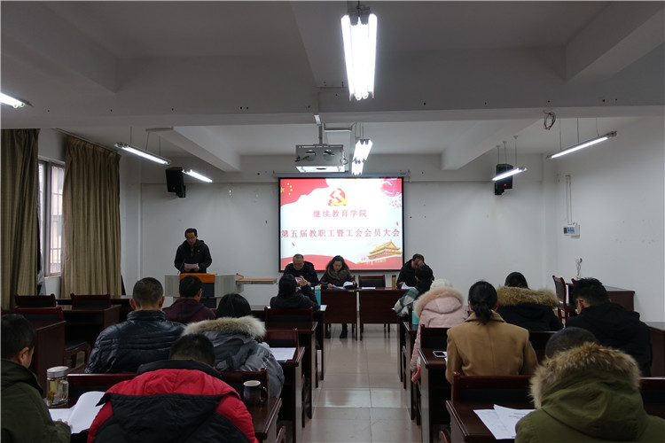 12月30日上午,继续教育学院在北院逸夫楼406报告厅召开第五届教职工暨工会会员大会第五次会议,学院全体教职工(工会会员)参加会议,副院长吴红刚主持会议。