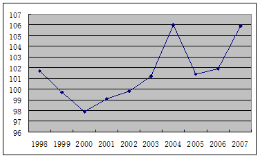 图6.1 1998~2007年云南省居民消费价格指数