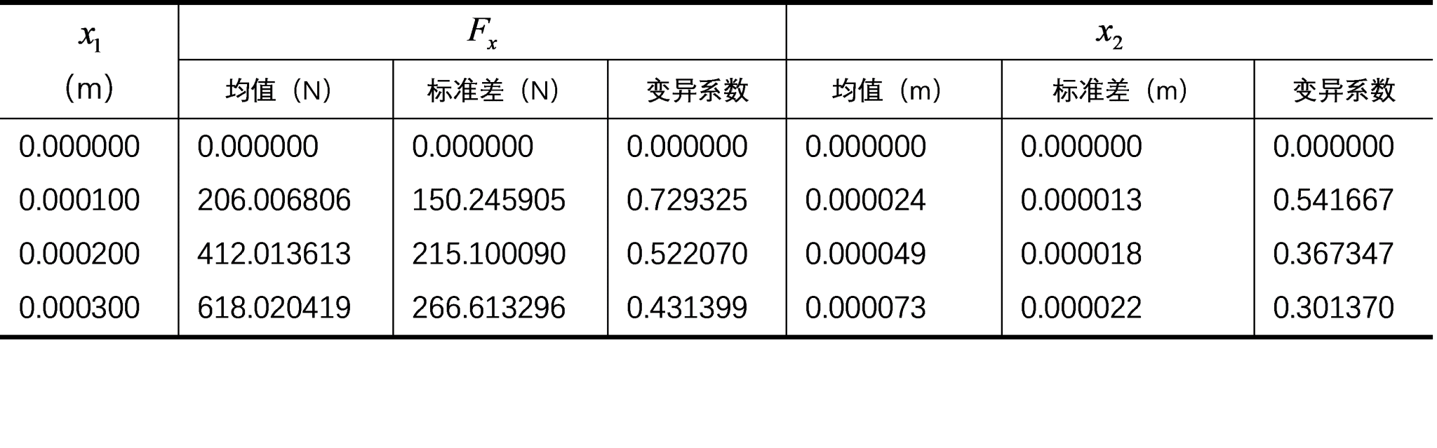 表6.1 线性五杆结构各自由度随机反应数值特征
