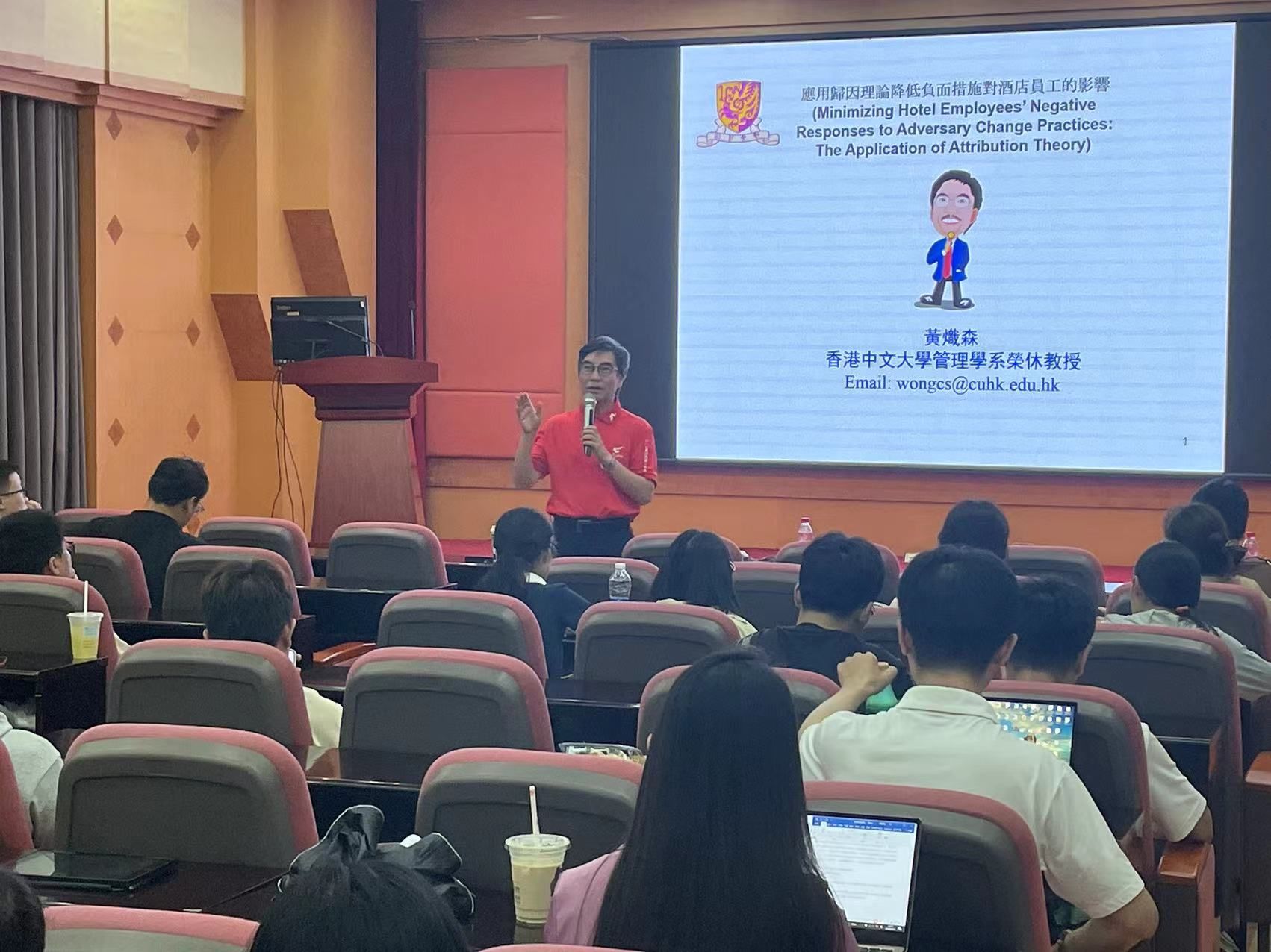 作为提高全校师生科研能力、开拓研究视野的重要平台,“云彩”学术讲坛第二期于6月19日下午如期开讲,本期学校邀请香港中文大学管理学院黄炽森教授到校作题为“应用归因理论降低负面措施对酒店员工的影响”的报告,全校约100名师生参加了讲坛。