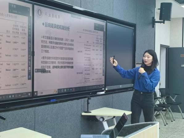 本次论坛由金融学院王瑶老师和商学院王墨林老师进行汇报,论文题目分别为“数字金融浪潮中的隐形壁垒:农户信贷行为的异质性分析”和“智能化转型能降低企业盈余操纵吗?”,2位老师汇报完论文后,3位专家有针对性地提出了修改意见和改进建议,与会师生积极参与,共同探讨,促进了学术交流,激发了创新思维。
