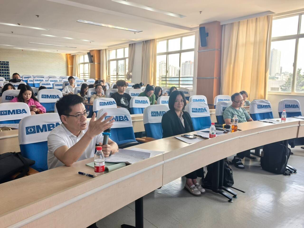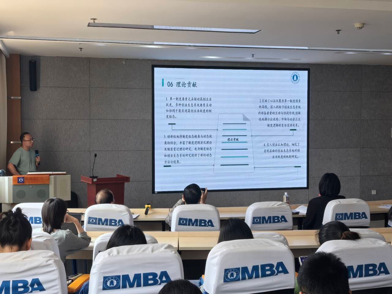 商学院两位青年教师程建青副教授和杨荣静博士分别以“经济波动下创业生态系统如何驱动高创业活跃度?——基于制度组态演化的动态QCA分析”和“中美技术管制政策评估:基于多源数据与机器学习的因果效应分析”为主题进行了论文汇报,点评专家有针对性地提出了各自的修改意见和论文提升建议,与会师生积极参与,共同探讨,促进了学术交流,激发了创新思维。