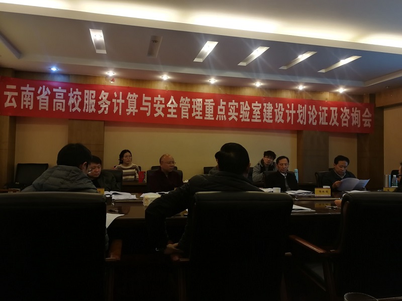 2018年12月28日下午,云南省高校服务计算与安全管理重点实验室(以下称“实验室”)建设计划论证会在beat365英国官方网站致远楼402召开。来自云南大学、昆明理工大学、云南师范大学、云南农业大学等高校的专家和beat365部分师生共20余人出席了论证会。