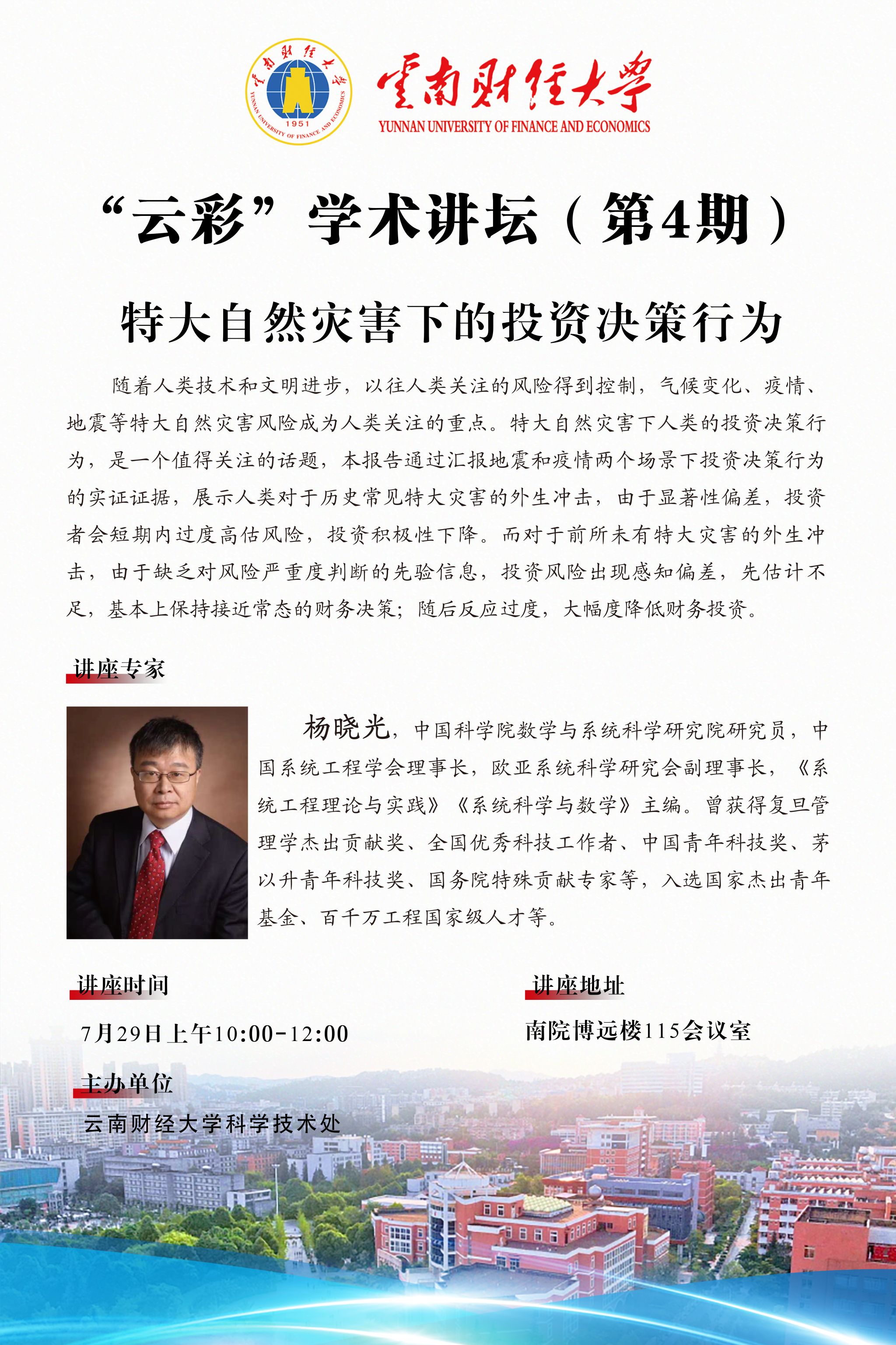 “云彩”学术讲坛(第4期)----特大自然灾害下的投资决策行为