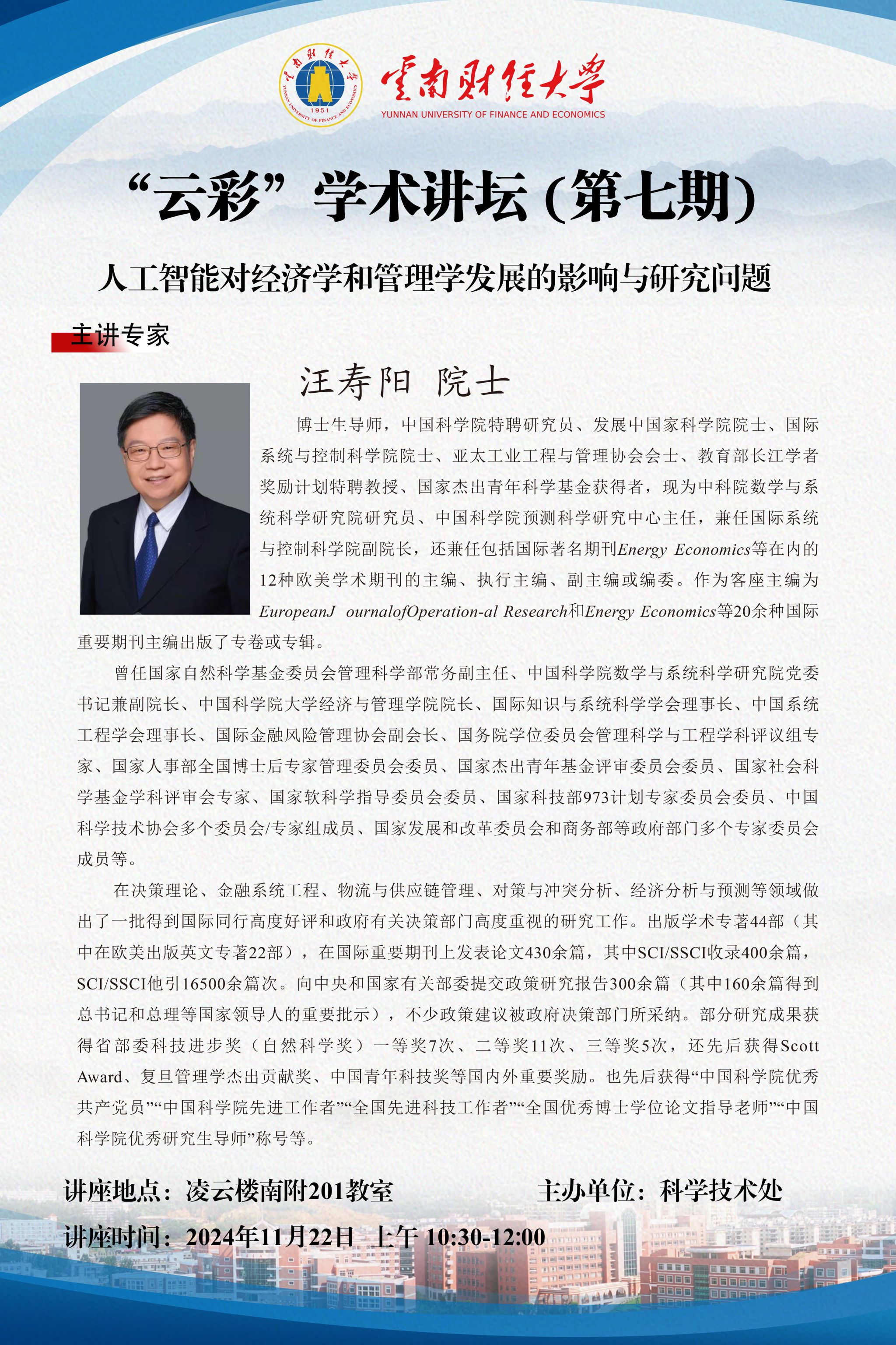 “云彩”学术讲坛(第7期)------人工智能对经济学和管理学发展的影响与研究问题