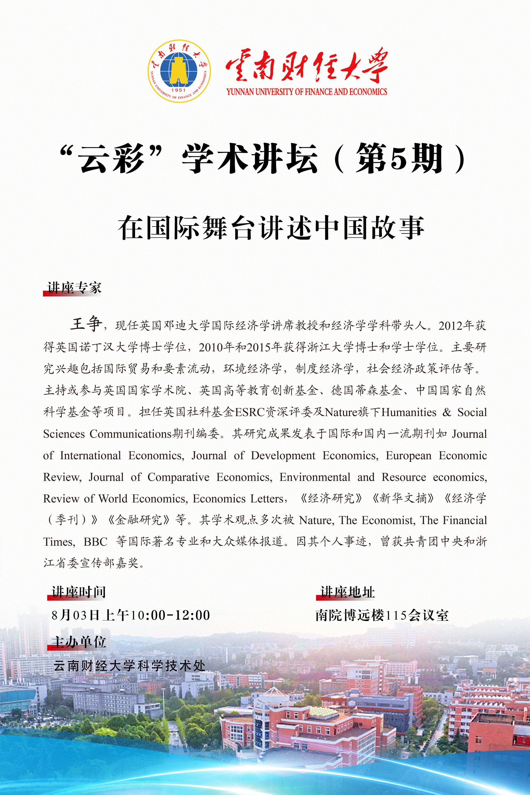 “云彩”学术讲坛(第5期)----在国际舞台讲述中国故事