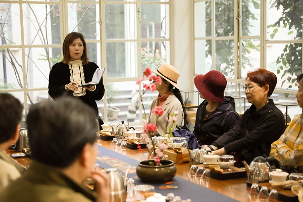 随后,大家参观了钟正山美术馆及馆内的各个工作室。高级茶艺师吴琼向大家分享了茶礼仪、品茗、茶健康、茶分类等方面的内容,在茶艺师吴琼的讲解下,大家亲身体验泡茶流程,体会中国茶文化的博大精深。
