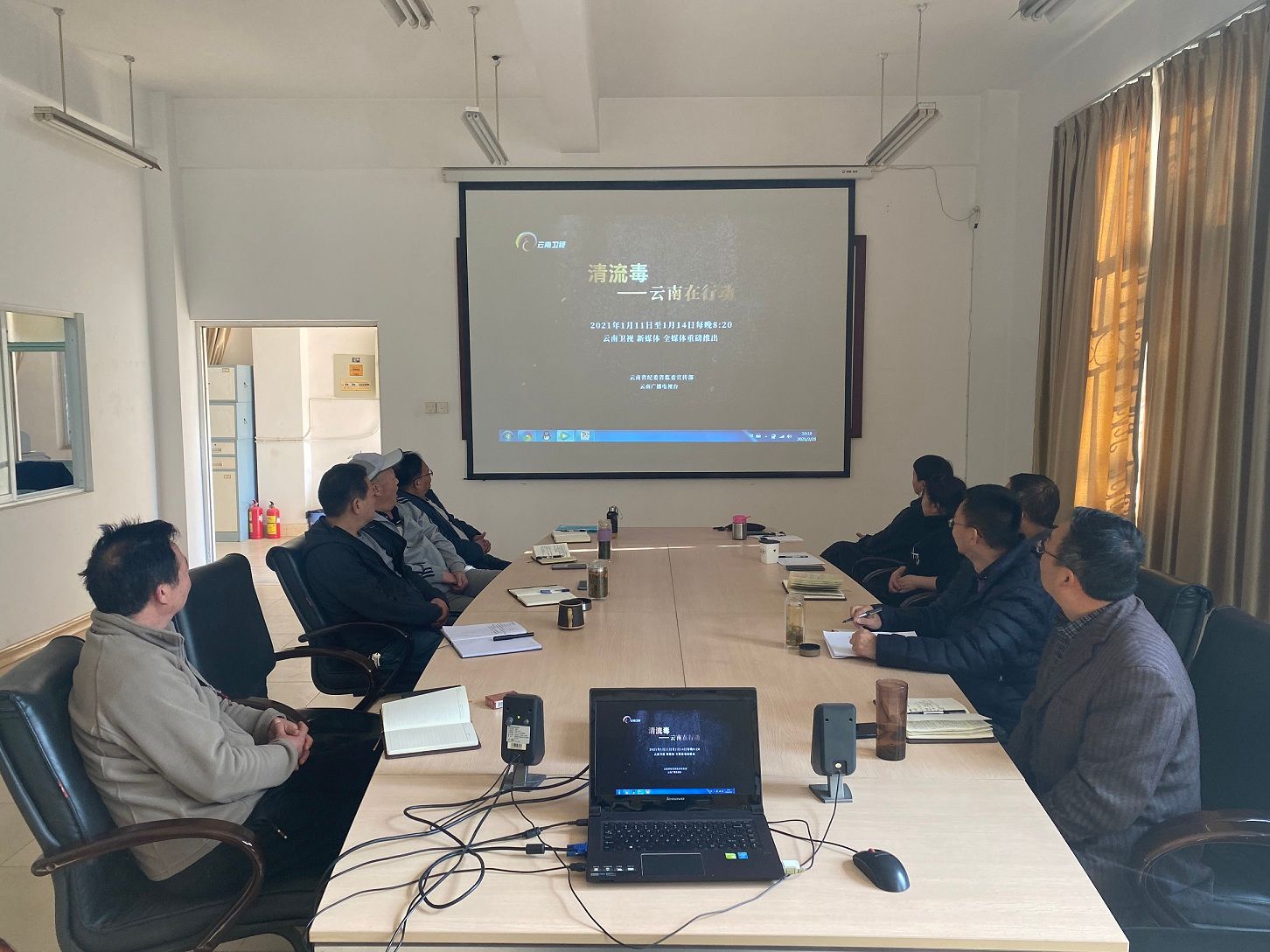 会议分两部分进行,一是集中观看《清流毒——云南在行动》电视系列专题片;二是传达《关于近期违纪问题的通报》。会议强调:通过学习,大家对违纪违法要有更深刻的理解和认识,进一步提高政治站位、增强法纪意识和底线意识。使学习教育真正发挥震慑和警示作用,坚决杜绝各类违纪违法事件发生。