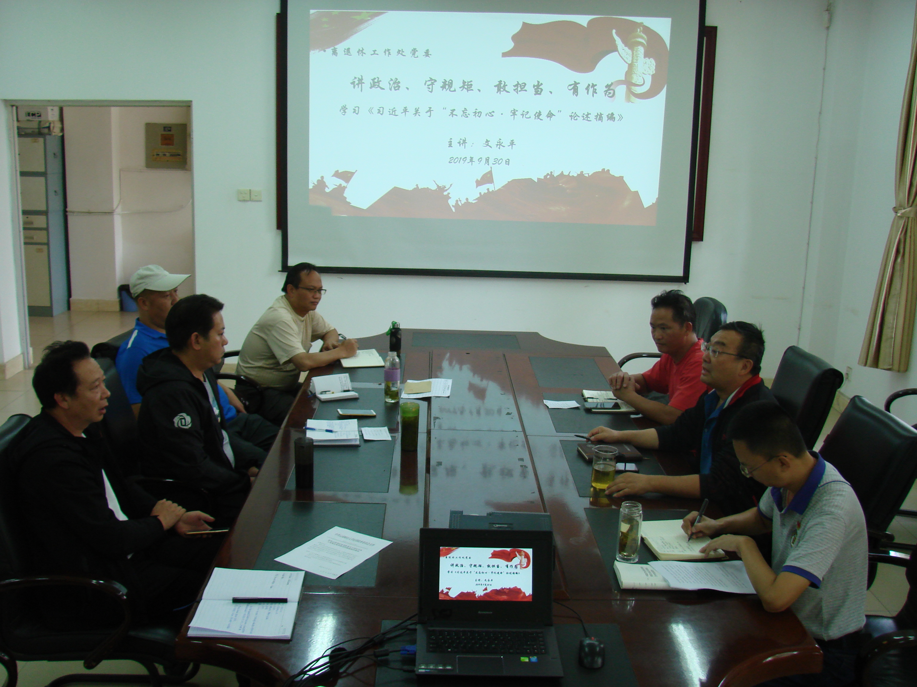 9月30日,离退休处党委开展“不忘初心、牢记使命”主题教育第一专题第四次集中学习研讨,处党委副书记、纪委书记文永平作主题发言,全体在职党员参加学习,学习活动由处党委书记唐永昆主持。