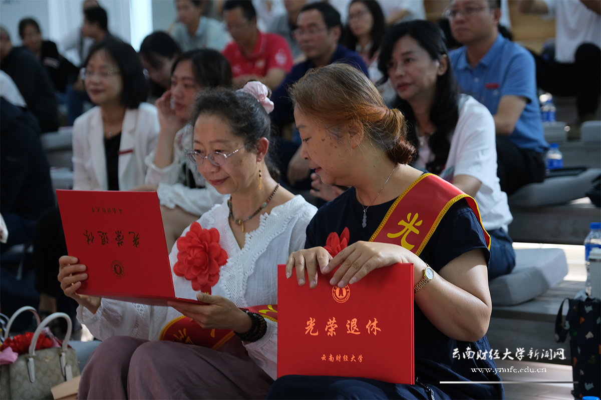 王建颖表达了对新退休教职工们的感谢之情、感恩之心、敬重之意。她表示,新退休教职工是学校建设发展中重要的奉献者、参与者、见证者,“求实创新”的云财校风,“敢为人先、自强不息”的云财精神,正是一代又一代云财人拼搏奋斗出来的,只有把学校的精神品格、文化基因传承好、发扬好,学校才能欣欣向荣,不断取得新的更大成绩。她强调,匠心守望初心,师道传承大道,新进教师要学习退休教师身上的优良品德和作风,在三尺讲台上赓续云财精神和师德师风。她希望新退休教职工们做好人生的第二规划,继续关心支持学校的建设发展,为学校建设和经济社会发展贡献智慧力量。同时她祝愿新退休教职工们生活幸福、退有所为、退有所乐,书写美好的人生新篇章。