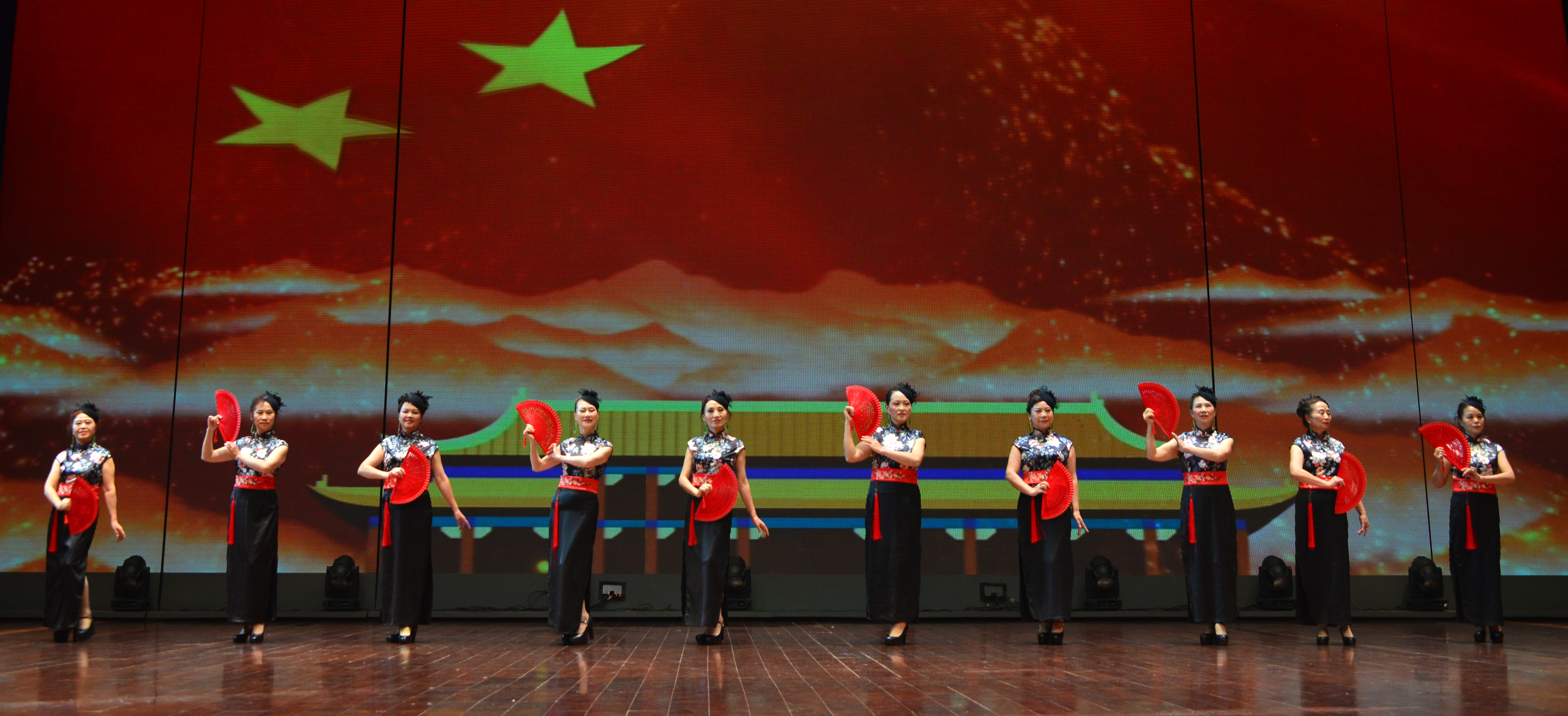 演出开始 第一个节目:合唱 “不忘初心” 第二个节目:旗袍秀:祝福祖国 第三个节目:器乐合奏 神奇的九寨 采茶舞曲 第四个节目:民族韵律舞操 多彩中华 第五个节目:舞蹈 油纸伞 第六个节目:藏族舞 毛主席的光辉 第七个节目:舞蹈 花儿这样红 第八个节目:水兵舞:今天是你的生日 第九个节目:现代舞:往日时光 第十个节目:舞蹈:茉莉花 第十一个节目:歌曲联唱 祝福你,我的祖国