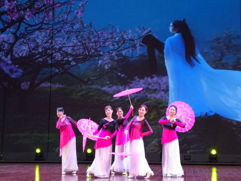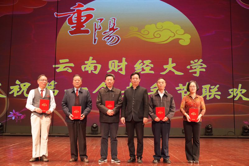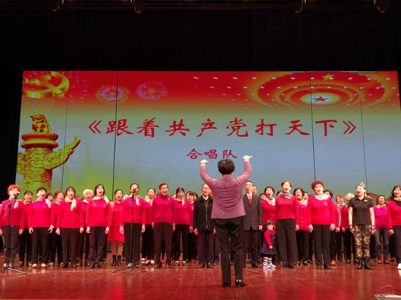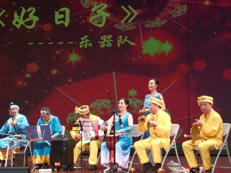 节日庆祝联欢会上,举行表彰活动,学校老年艺术团表演了九个自编的精彩文艺节目。